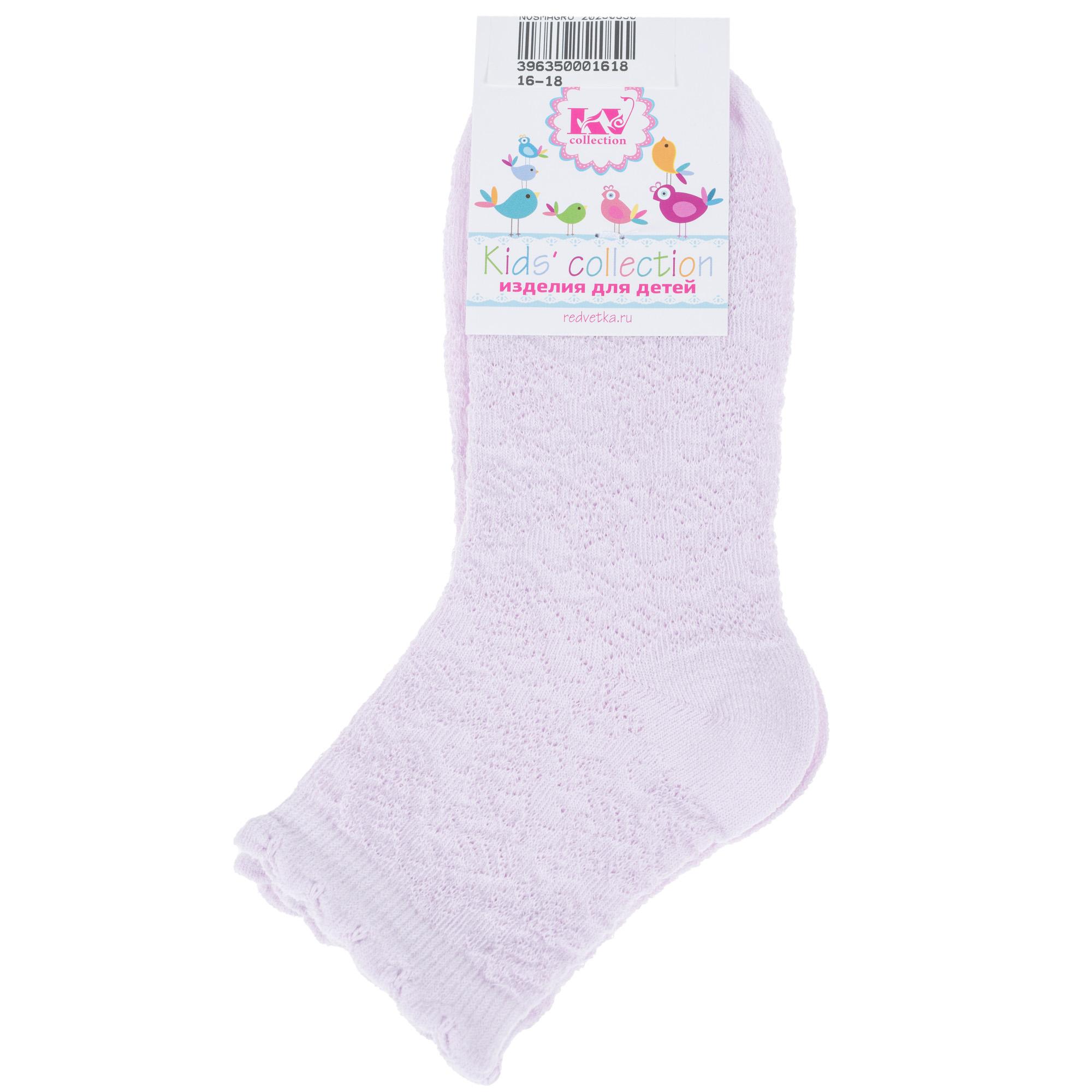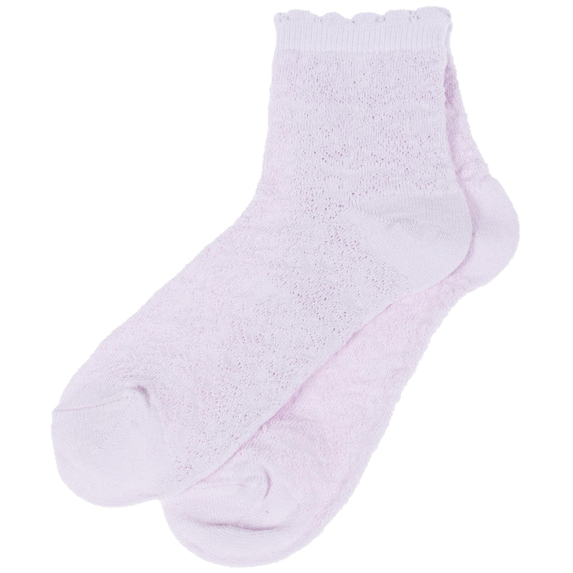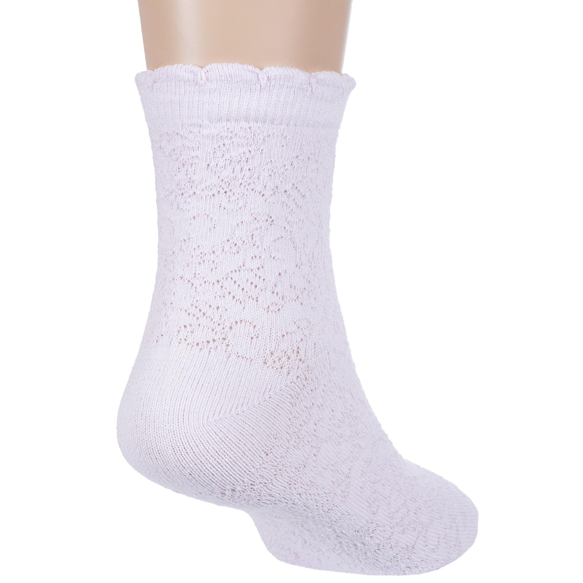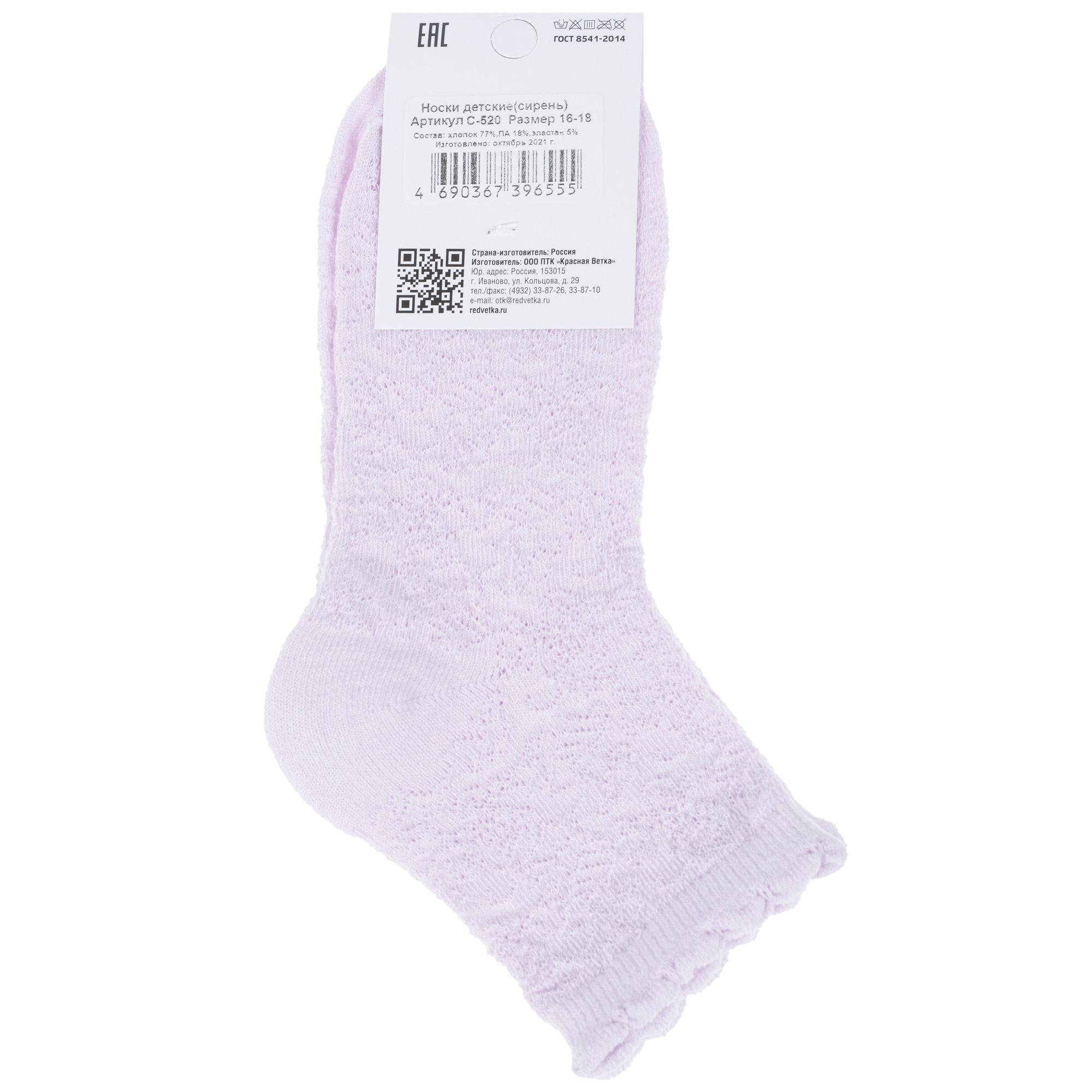 Летние укороченные детские носки, цвет сиреневый, ажурные, классические, возможно бесшовные, принт (рисунок): цветы / растения, орнамент, с узором, однотонный, состав: 77% хлопок, 18% полиамид, 5% эластан, арт. С-520. Производитель «КРАСНАЯ ВЕТКА» Россия под брендом «Красная ветка».