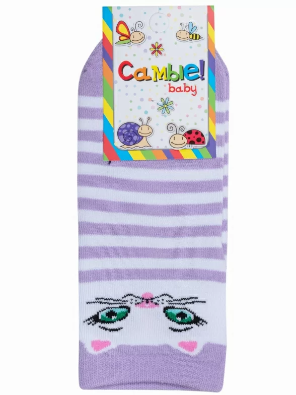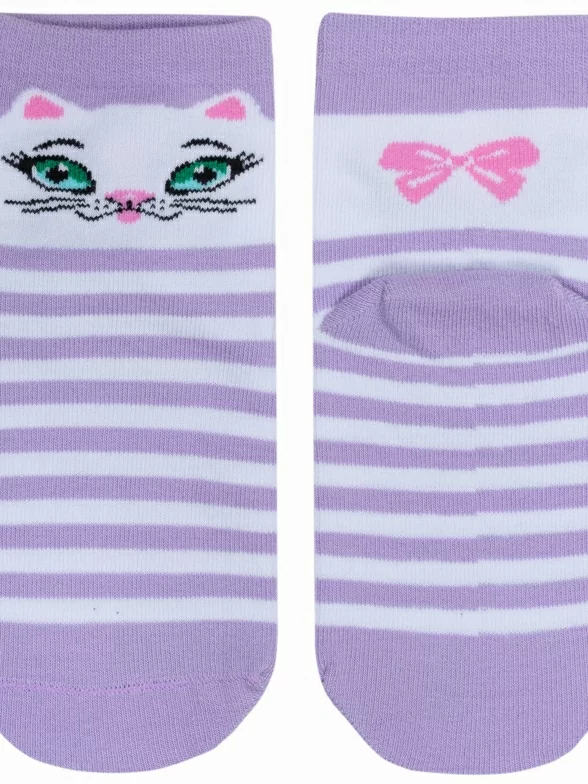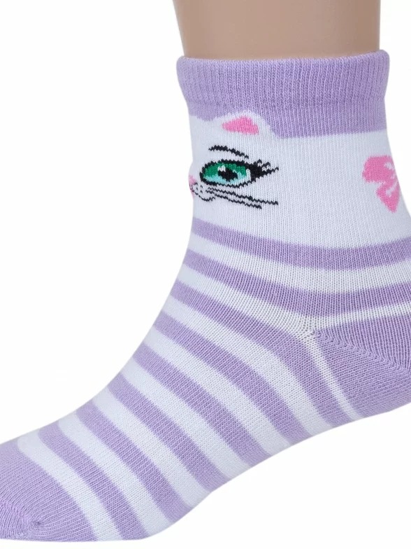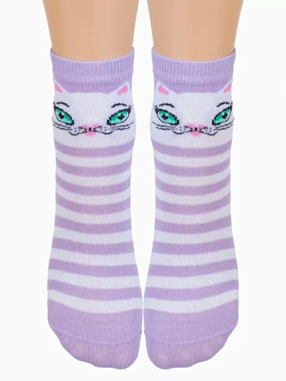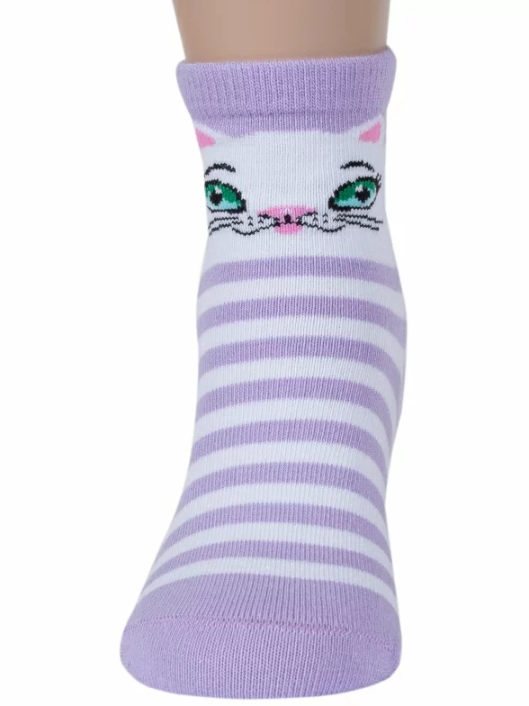 Круглогодичные укороченные детские носки, цвет сиреневый, повседневные, возможно бесшовные, принт (рисунок): животные, с узором, состав: 73% хлопок, 21% полиамид, 6% эластан (узор из полипропилена), арт. С-785. Производитель «КРАСНАЯ ВЕТКА» Россия под брендом «Красная ветка».