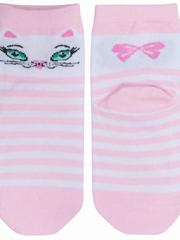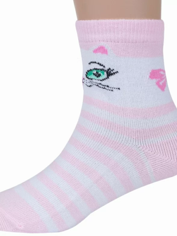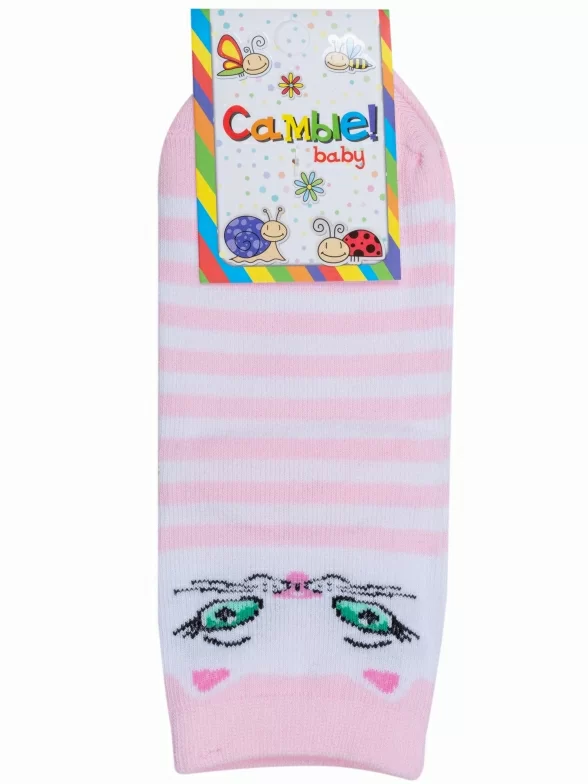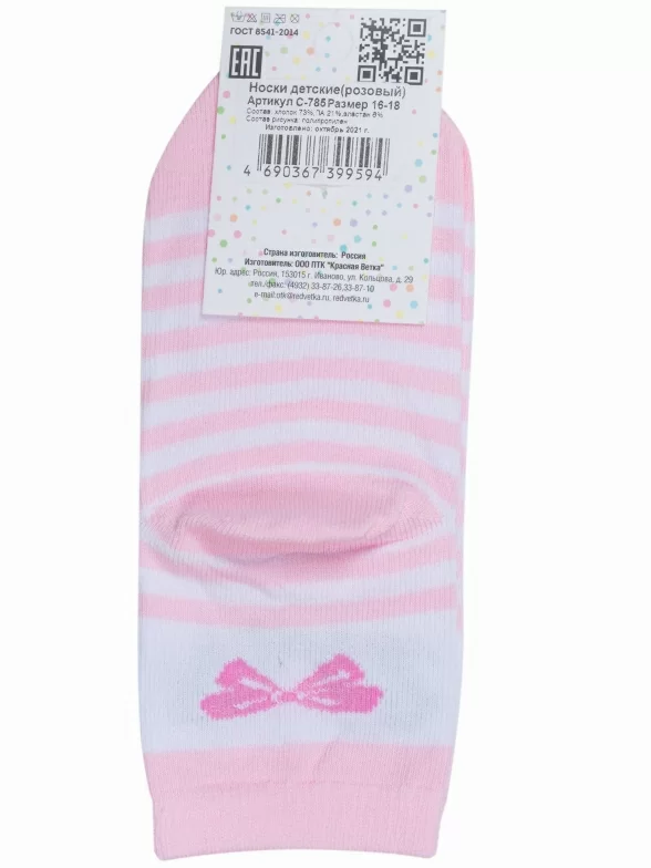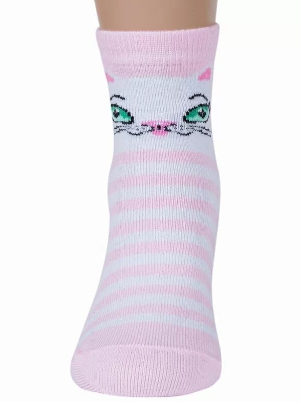 Круглогодичные укороченные детские носки, цвет розовый, повседневные, возможно бесшовные, принт (рисунок): животные, с узором, состав: 73% хлопок, 21% полиамид, 6% эластан (узор из полипропилена), арт. С-785. Производитель «КРАСНАЯ ВЕТКА» Россия под брендом «Красная ветка».