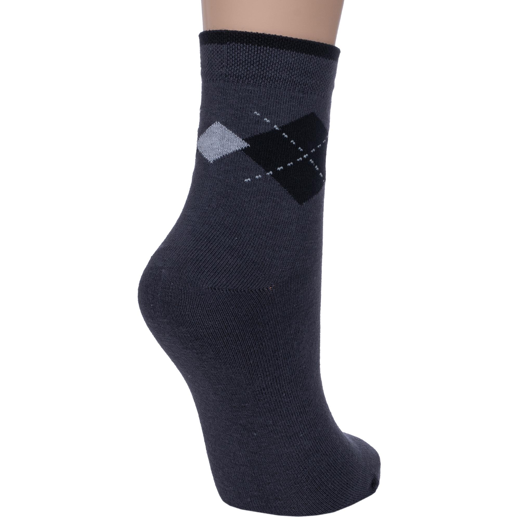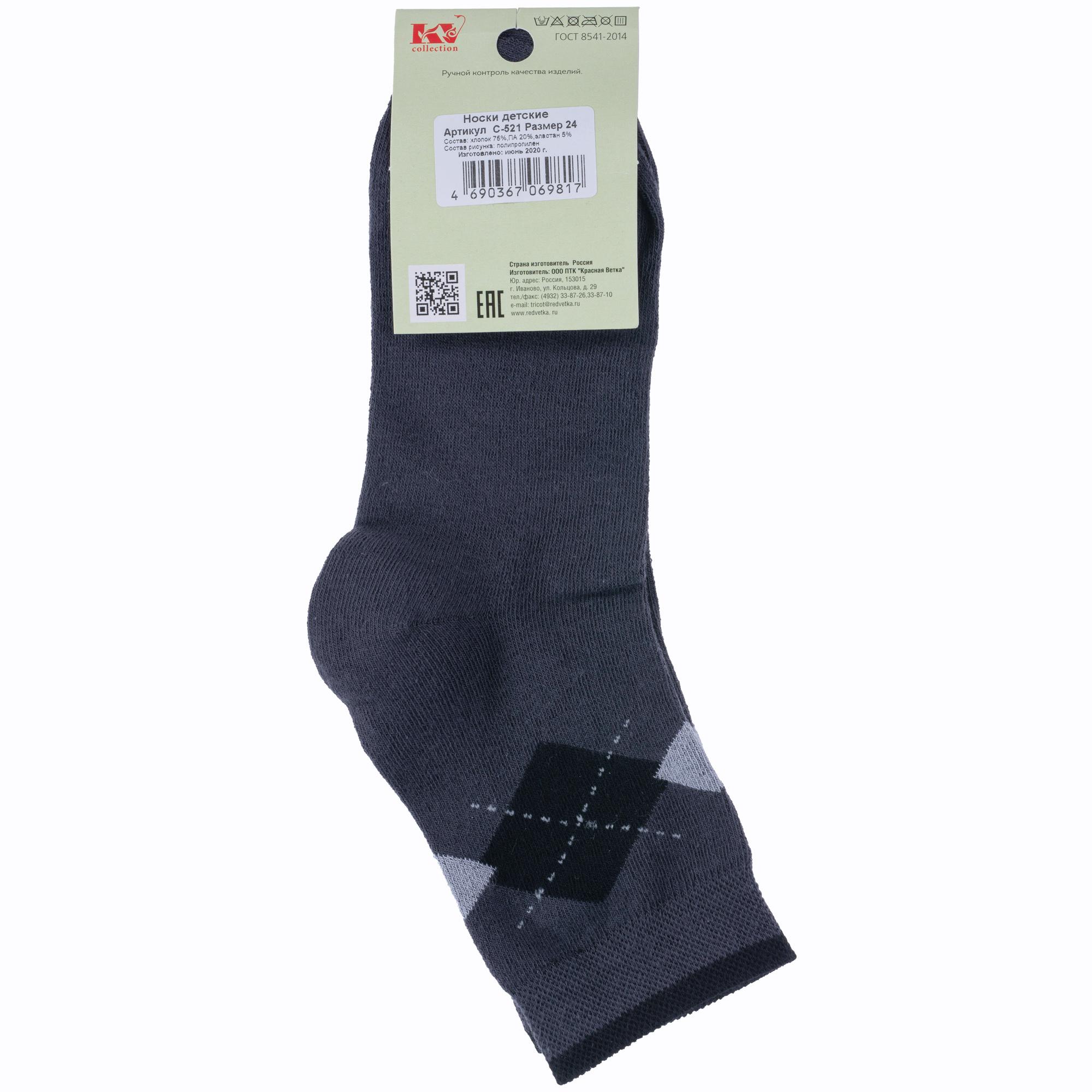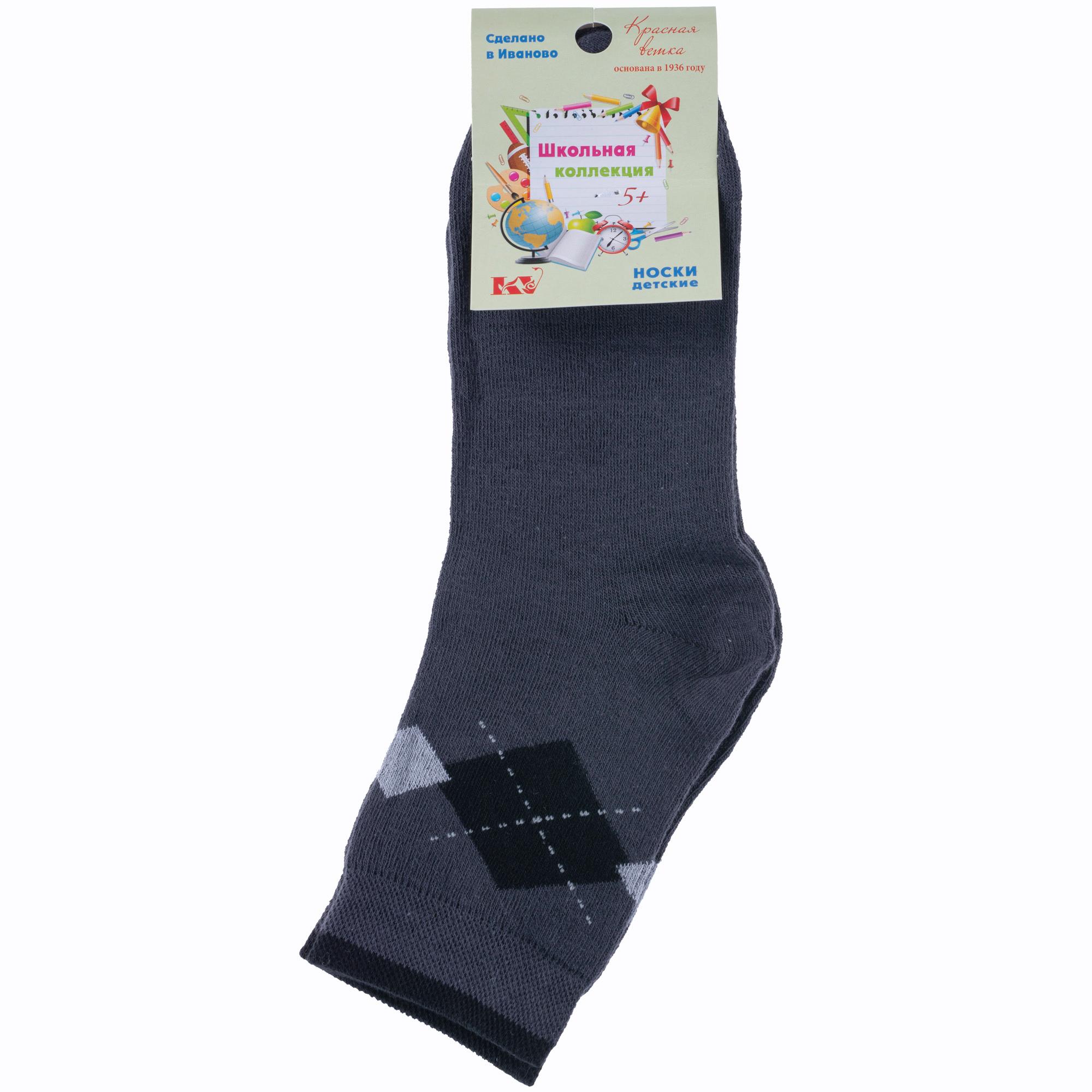 Круглогодичные укороченные детские носки, цвет темно-серый, классические, шов обычный (не бесшовные), принт (рисунок): аргайл, с узором, состав: 75% хлопок, 20% полиамид, 5% эластан, арт. С-521. Производитель «КРАСНАЯ ВЕТКА» Россия под брендом «Красная ветка».