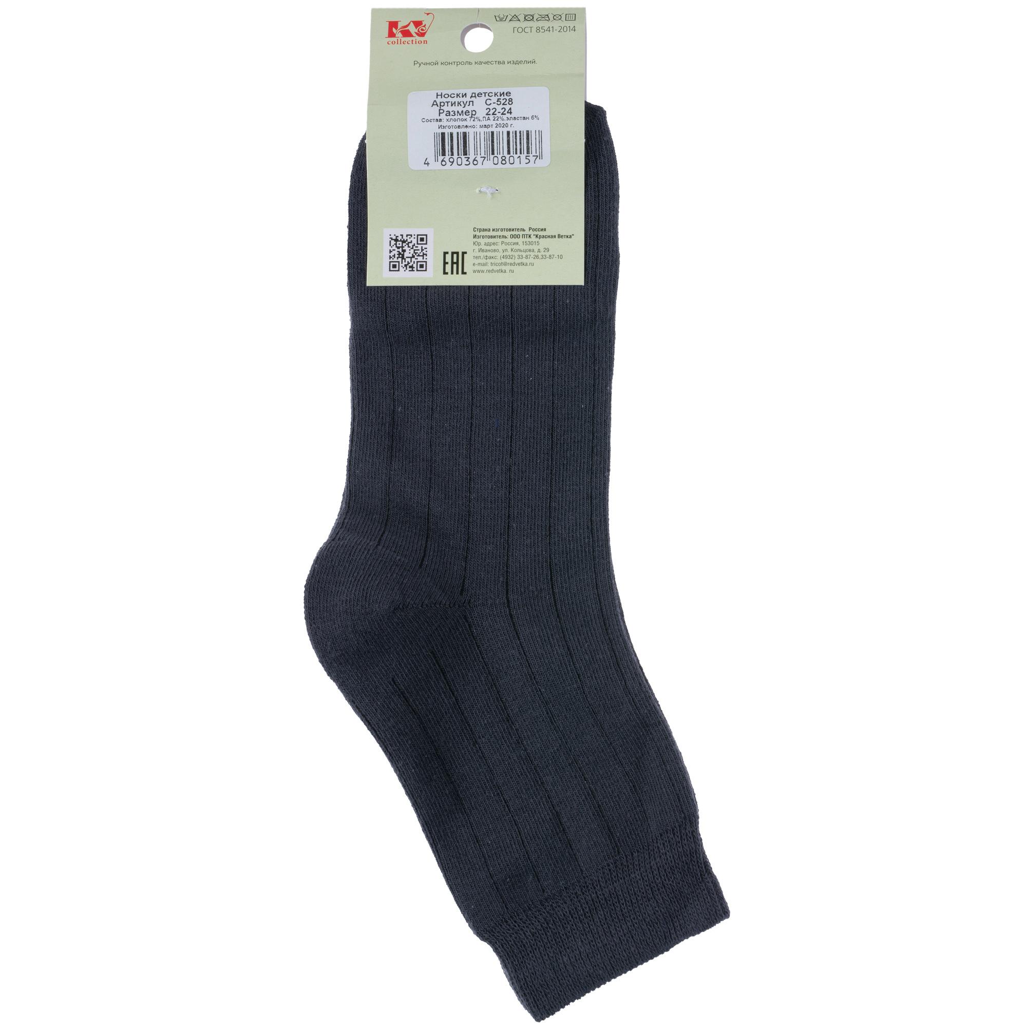 Круглогодичные укороченные детские носки, цвет темно-серый, классические, шов обычный (не бесшовные), принт (рисунок): в рубчик, однотонный, состав: 72% хлопок, 22% полиамид, 6% эластан, арт. С-528. Производитель «КРАСНАЯ ВЕТКА» Россия под брендом «Красная ветка».