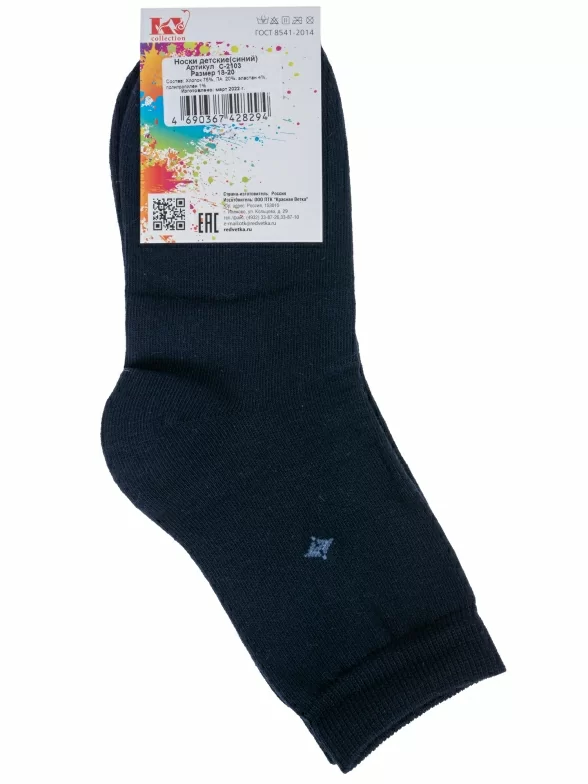 Круглогодичные укороченные детские носки, цвет темно-синий, классические, возможно бесшовные, принт (рисунок): однотонный, небольшой рисунок, состав: 75% хлопок, 20% полиамид, 4% эластан, 1% полипропилен, арт. С-2103. Производитель «КРАСНАЯ ВЕТКА» Россия под брендом «Красная ветка».