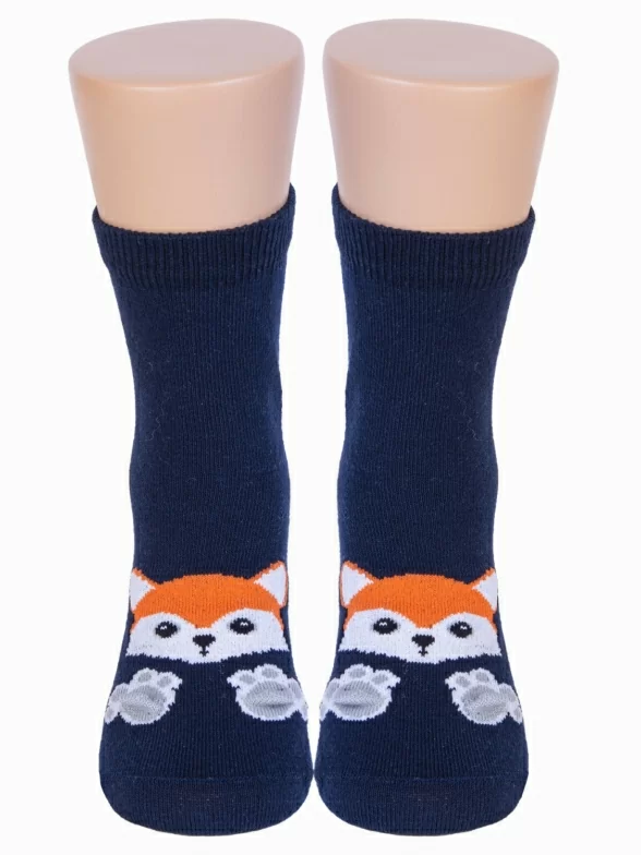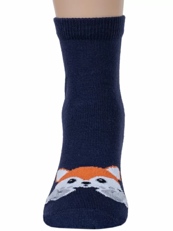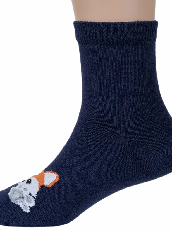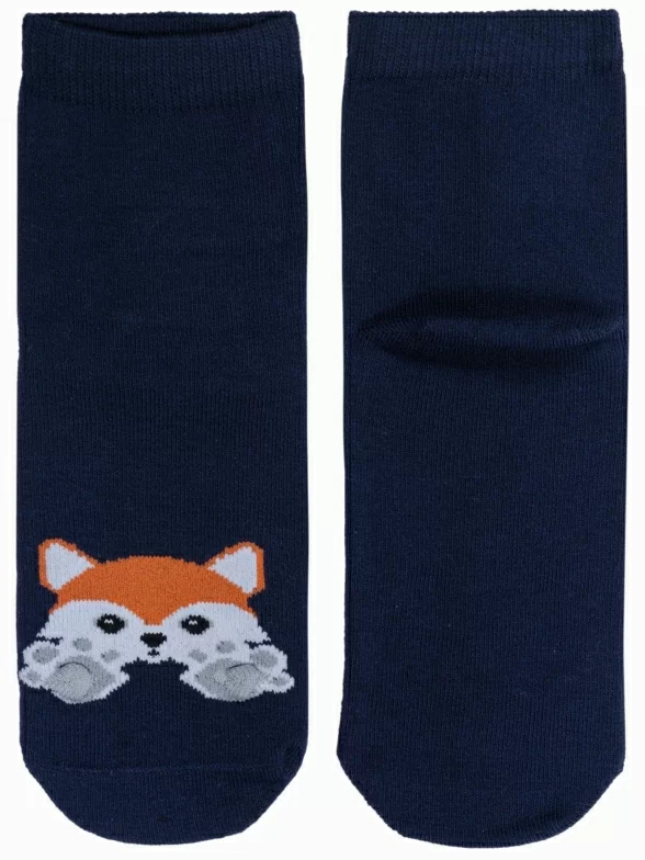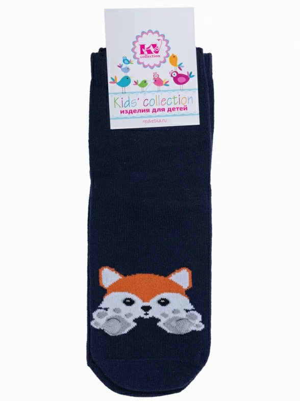Круглогодичные укороченные детские носки, цвет темно-синий, повседневные, возможно бесшовные, принт (рисунок): животные, с узором, состав: 65% хлопок, 20% полиамид, 11% полипропилен, 4% эластан, арт. С-2109. Производитель «КРАСНАЯ ВЕТКА» Россия под брендом «Красная ветка».