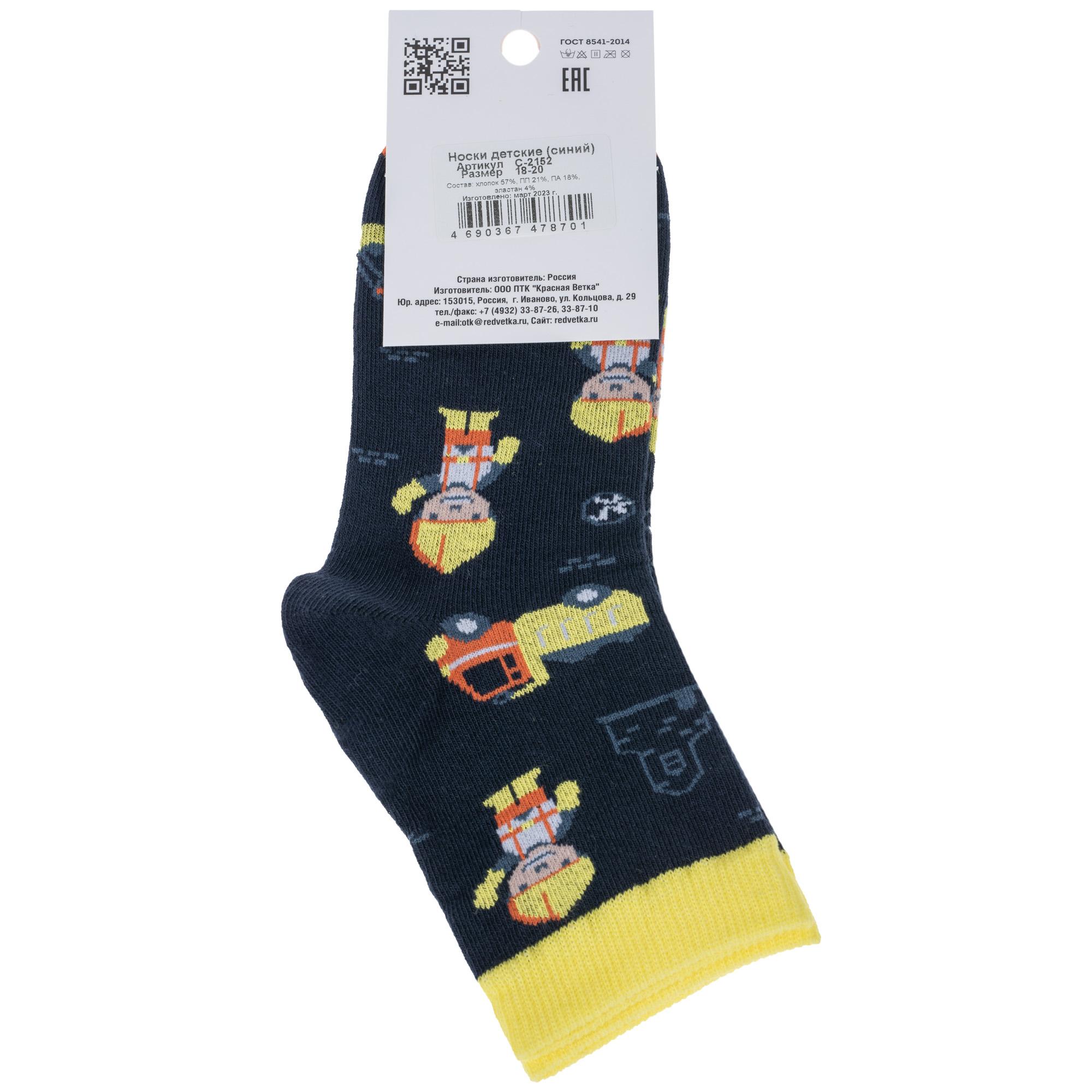 Круглогодичные укороченные детские носки, цвет темно-синий, повседневные, возможно бесшовные, принт (рисунок): транспорт, люди, контрастные пятка / мысок / резинка, с узором, состав: 57% хлопок, 21% полипропилен, 18% полиамид, 4% эластан, арт. С-2152. Производитель «КРАСНАЯ ВЕТКА» Россия под брендом «Красная ветка».