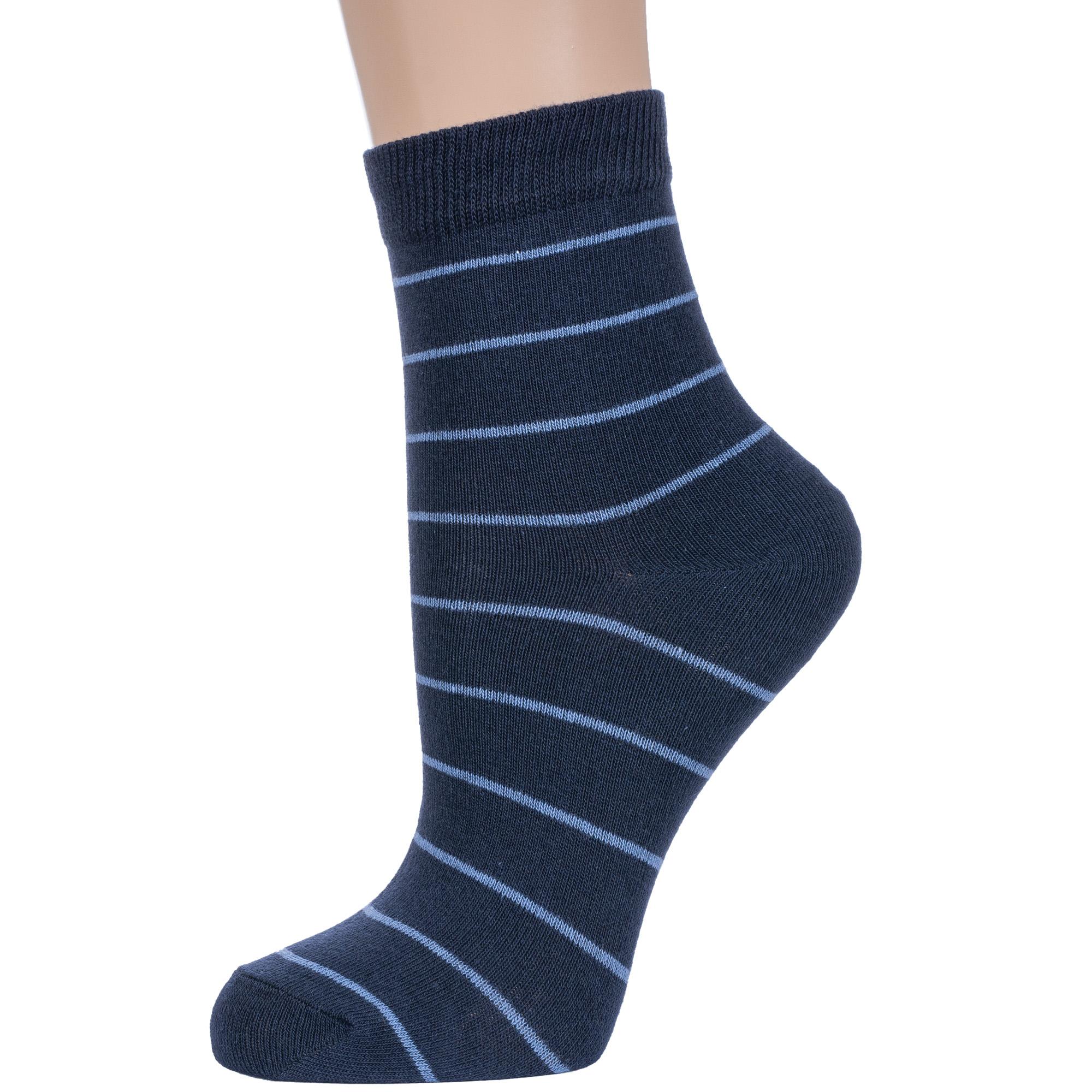Круглогодичные укороченные детские носки, цвет темно-синий, классические, возможно бесшовные, принт (рисунок): полоски, с узором, состав: 74% хлопок, 20% полиамид, 6% эластан, арт. С-773. Производитель «КРАСНАЯ ВЕТКА» Россия под брендом «Красная ветка».
