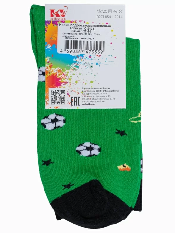 Круглогодичные средней длины детские носки, цвет зеленый, повседневные, возможно бесшовные, принт (рисунок): спортивные, игры, с узором, состав: 68% хлопок, 19% полиамид, 9% полипропилен, 4% эластан, арт. С-2134. Производитель «КРАСНАЯ ВЕТКА» Россия под брендом «Красная ветка».