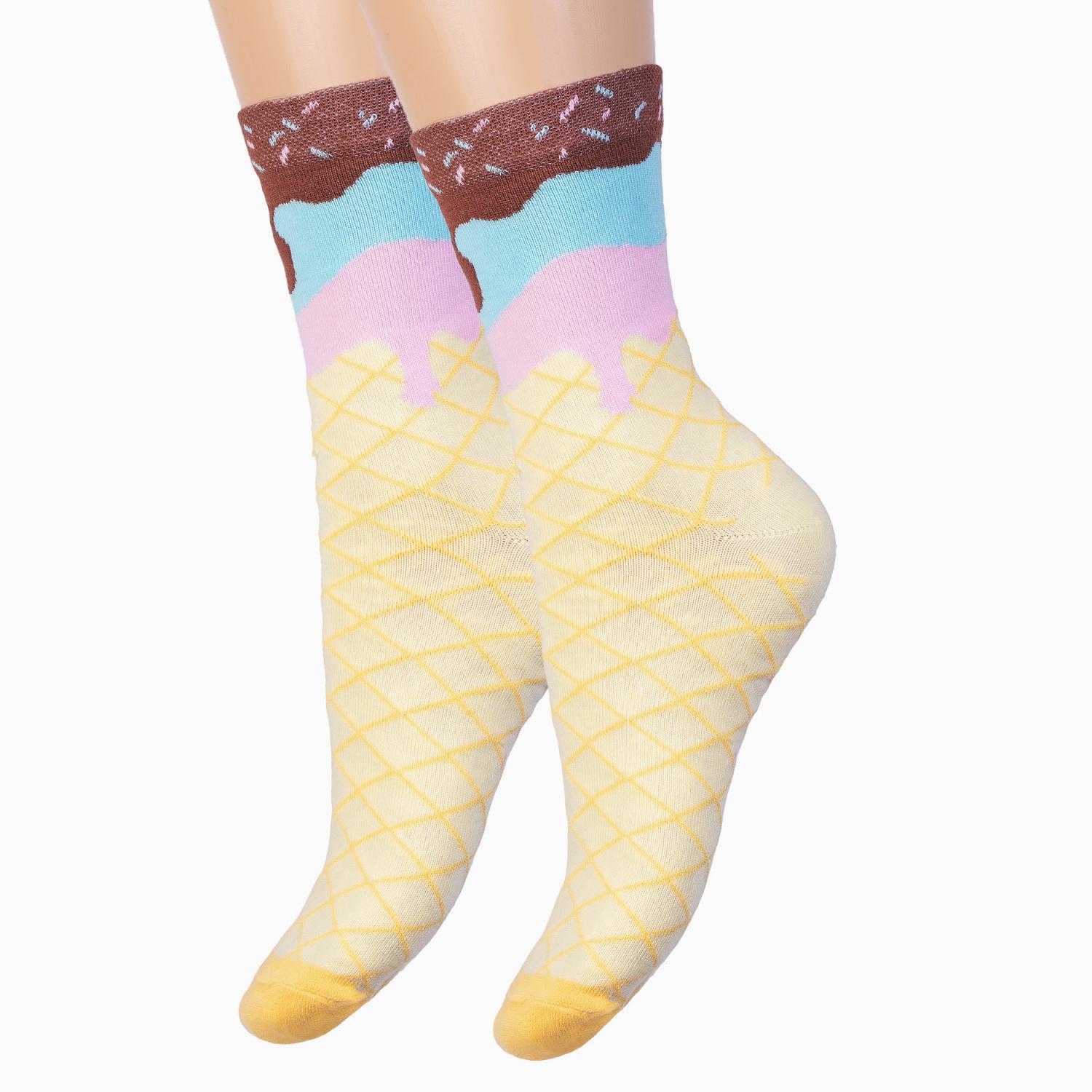 Круглогодичные средней длины детские носки, цвет желтый, повседневные, возможно бесшовные, принт (рисунок): еда и напитки, с узором, состав: 80% хлопок, 16% полиамид, 4% эластан, арт. С-2149. Производитель «КРАСНАЯ ВЕТКА» Россия под брендом «Красная ветка».
