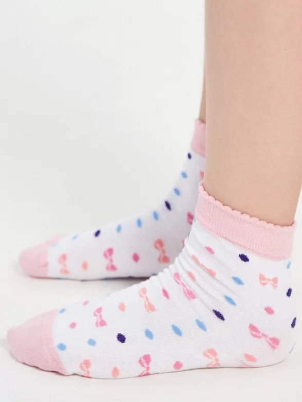 Симпатичные повседневные носочки для детей. Мягкие, удобные, эластичные - состоят на 90% из хлопка. А входящий в состав эластан и полиамид делают изделие более плотным, износостойким, но при этом хорошо тянущимся. Резиночка не пережимает нежную детскую кожу.