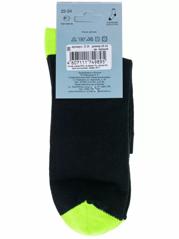 Детские носки LORENZline, П20, ЧЕРНО-САЛАТОВЫЕ