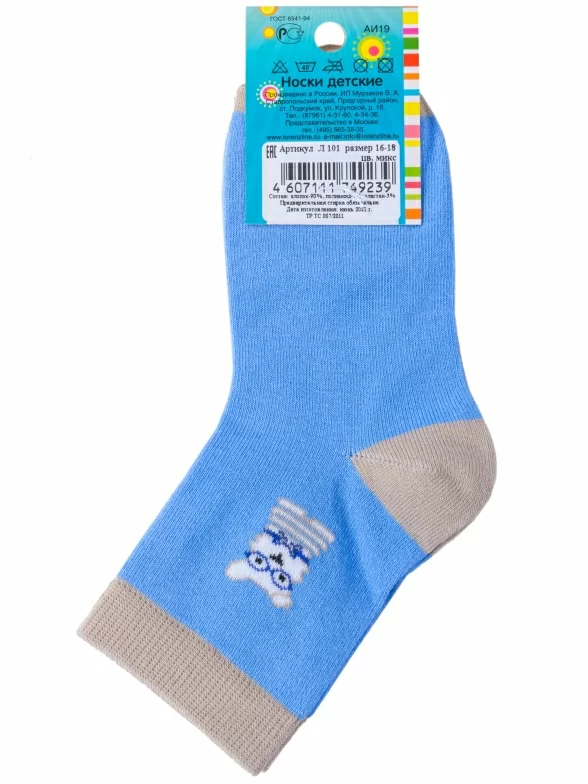 Детские носки LORENZline, Л101, ГОЛУБО-БЕЖЕВЫЕ с собачкой