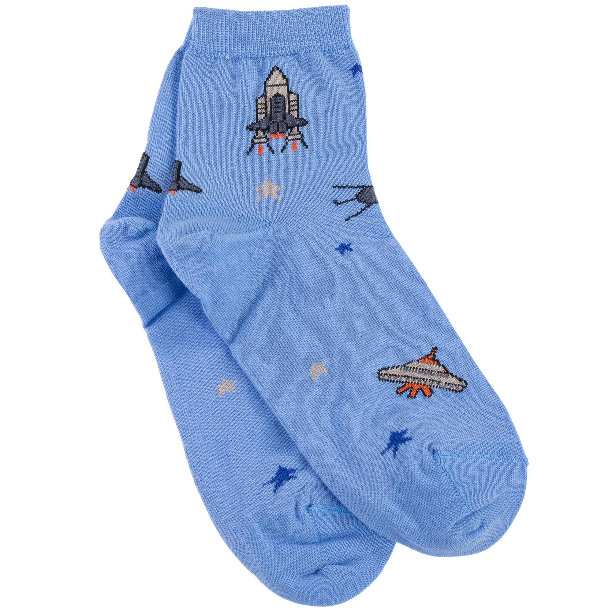 Симпатичные повседневные носочки для детей. Мягкие, удобные, эластичные - состоят на 85% из хлопка. А входящий в состав эластан и полиамид делают изделие более плотным, износостойким, но при этом хорошо тянущимся. Резиночка не пережимает нежную детскую кожу. Особенность модели - космический рисунок.