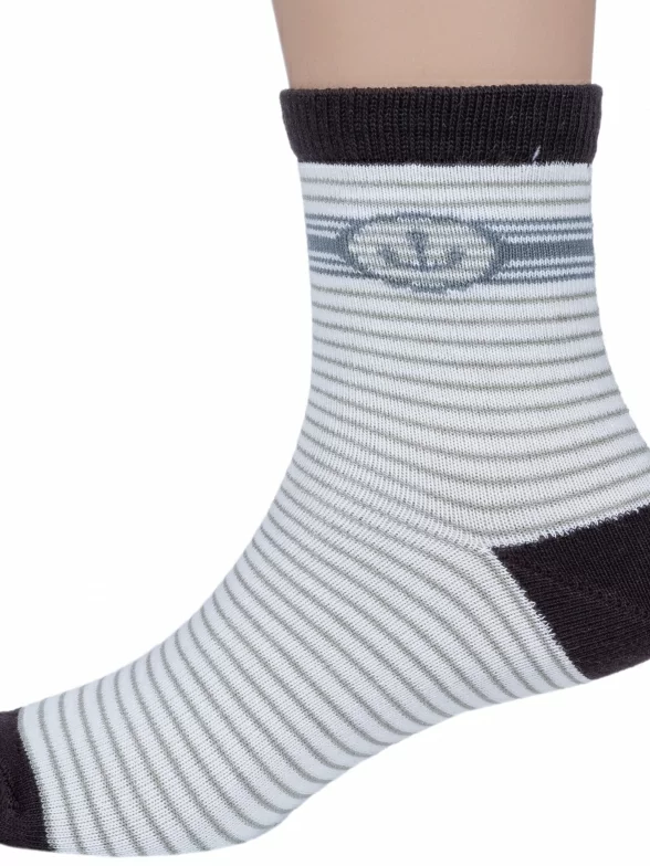 Симпатичные повседневные носочки для детей. Мягкие, удобные, эластичные - состоят на 90% из хлопка. А входящий в состав эластан и полиамид делают изделие более плотным, износостойким, но при этом хорошо тянущимся. Резиночка не пережимает нежную детскую кожу. Особенность модели - полосатый узор.