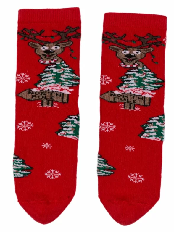 Симпатичные повседневные носочки для детей. Мягкие, удобные, эластичные - состоят на 90% из хлопка. А входящий в состав эластан и полиамид делают изделие более плотным, износостойким, но при этом хорошо тянущимся. Резиночка не пережимает нежную детскую кожу. Модель украшена смешным рисунком с новогодней тематикой - елочка, гирлянда, олень.