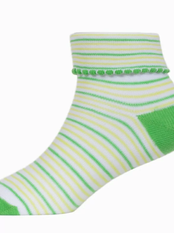 Симпатичные повседневные носочки для детей. Мягкие, удобные, эластичные - состоят на 85% из хлопка. А входящий в состав эластан и полиамид делают изделие более плотным, износостойким, но при этом хорошо тянущимся. Резиночка не пережимает нежную детскую кожу. Особенность модели - полосатый узор.