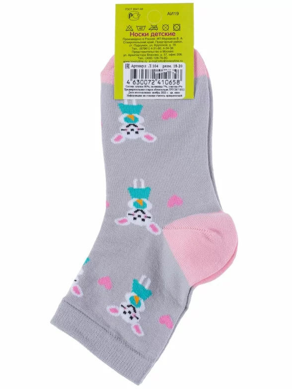 Детские носки LORENZline, Л104, СЕРО-РОЗОВЫЕ с мышками