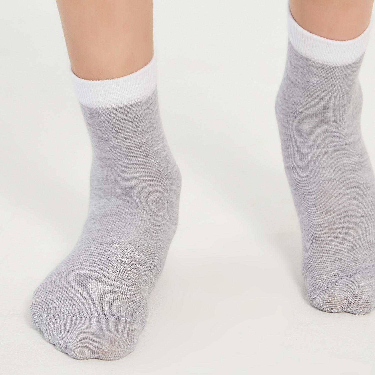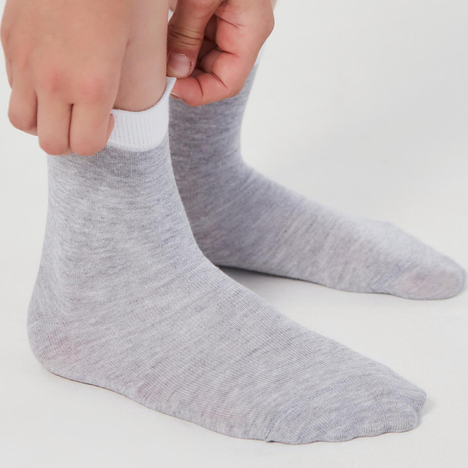 Хлопковые носки для детей серого цвета с контрастной белой резинкой. Изготовлены на российской фабрике LORENZLine. Состоят на 90% из хлопка и подарят на целый день ощущение мягкости и комфорта. Дышащие, эластичные и приятные на ощупь. Эластичная резинка не сдавливает кожу.