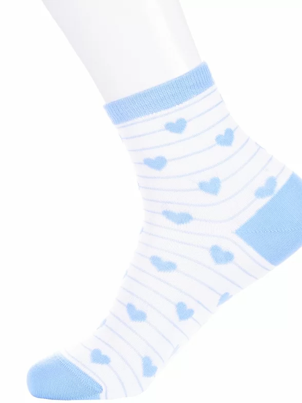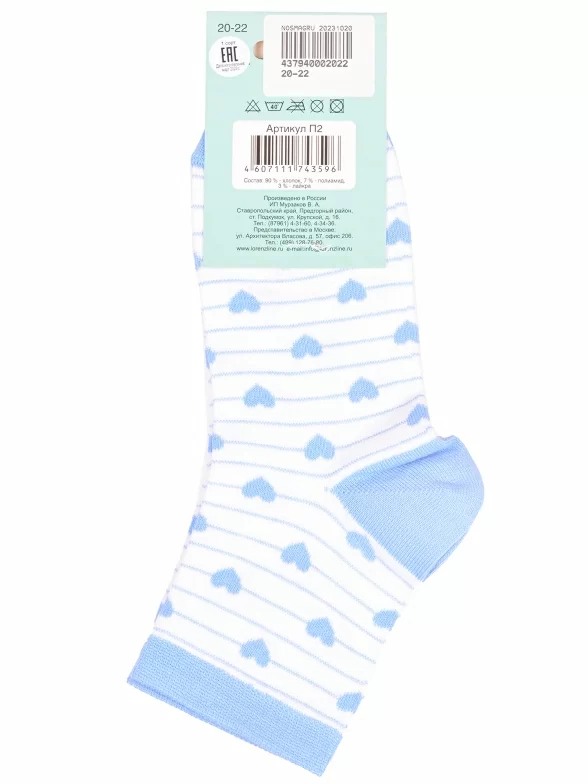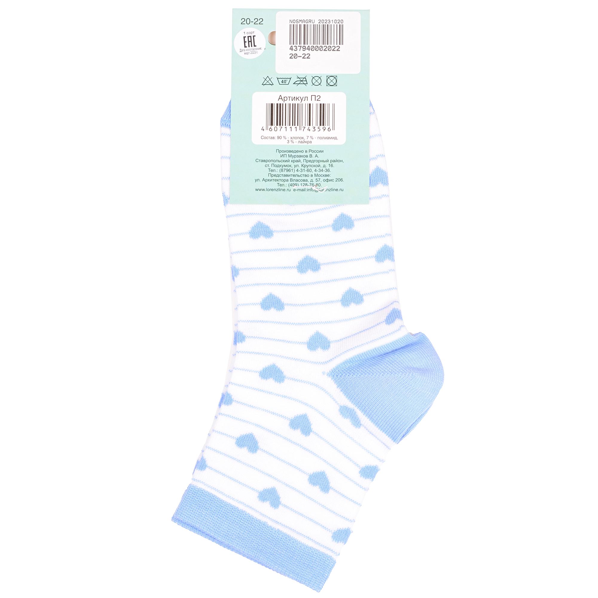 Круглогодичные укороченные детские носки, цвет голубой-белый, с принтом, состав: 90% хлопок, 7% полиамид, 3% эластан (лайкра), арт. П2. Производитель «ИП Мурзаков В.А., Ставропольский край, Россия» под брендом «Lorenzline».