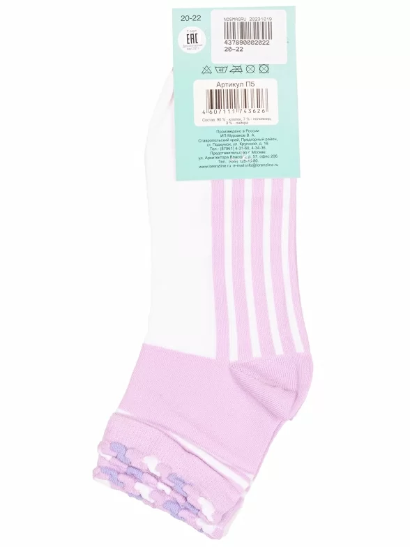 Круглогодичные укороченные детские носки, цвет сиреневый, спортивные, состав: 90% хлопок, 7% полиамид, 3% эластан (лайкра), арт. П5. Производитель «ИП Мурзаков В.А., Ставропольский край, Россия» под брендом «Lorenzline».