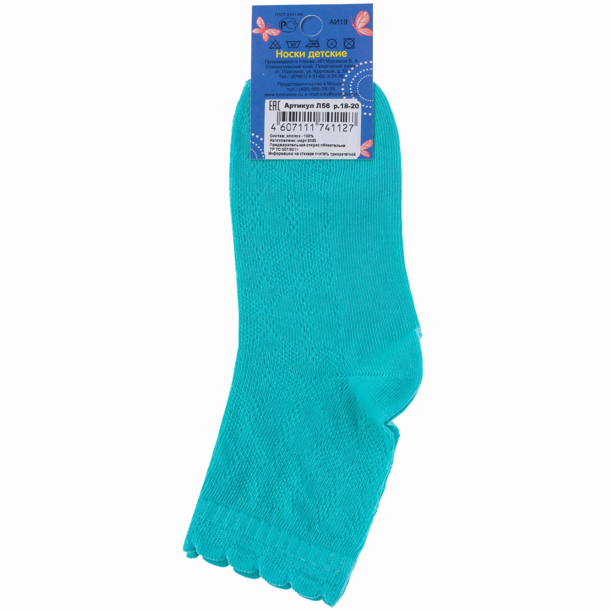 Летние средней длины детские носки, цвет бирюзовый, в сеточку, классические, шов обычный (не бесшовные), принт (рисунок): однотонный, состав: 100% хлопок, арт. Л56Д. Производитель «ИП Мурзаков В.А., Ставропольский край, Россия» под брендом «Lorenzline».