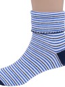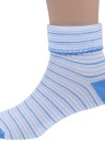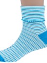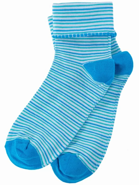 Круглогодичные укороченные детские носки, цвет бирюзовый, повседневные, с отворотом, возможно бесшовные, принт (рисунок): полоски, контрастные пятка / мысок / резинка, с узором, состав: 90% хлопок, 7% полиамид, 3% эластан (лайкра), арт. П4. Производитель «ИП Мурзаков В.А., Ставропольский край, Россия» под брендом «Lorenzline».