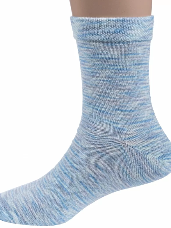 Круглогодичные средней длины детские носки, цвет голубой, классические, шов обычный (не бесшовные), принт (рисунок): полоски, градиент, с узором, однотонный, состав: 90% хлопок, 7% полиамид, 3% эластан (лайкра), арт. Л106. Производитель «ИП Мурзаков В.А., Ставропольский край, Россия» под брендом «Lorenzline».