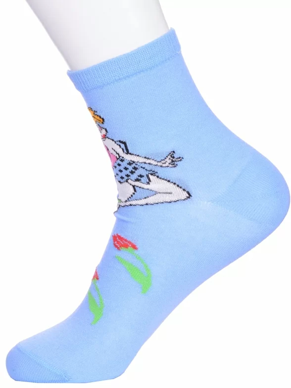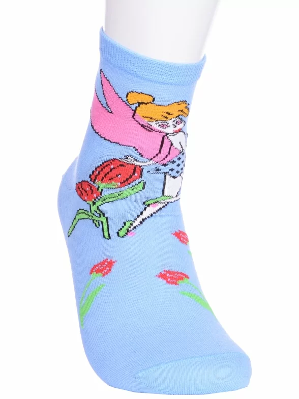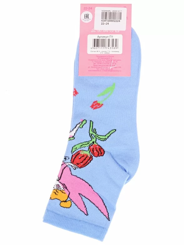 Круглогодичные укороченные детские носки, цвет голубой, с принтом, состав: 90% хлопок, 7% полиамид, 3% эластан (лайкра). Производитель «ИП Мурзаков В.А., Ставропольский край, Россия» под брендом «Lorenzline».
