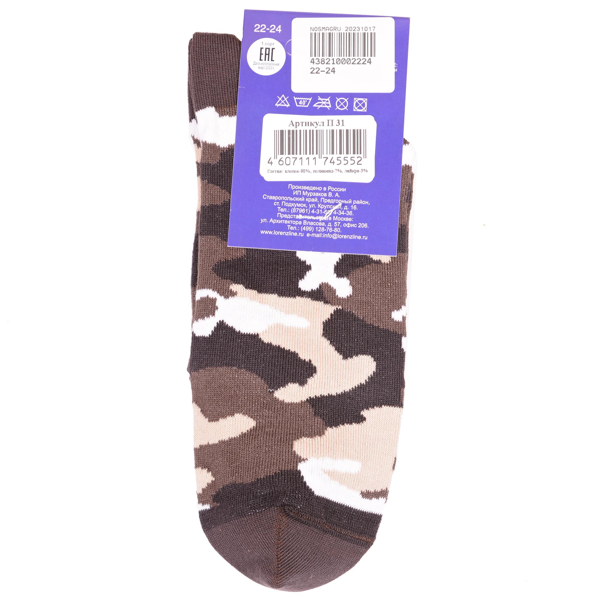 Круглогодичные укороченные детские носки, цвет коричневый, с принтом, состав: 90% хлопок, 7% полиамид, 3% эластан (лайкра), арт. П31. Производитель «ИП Мурзаков В.А., Ставропольский край, Россия» под брендом «Lorenzline».