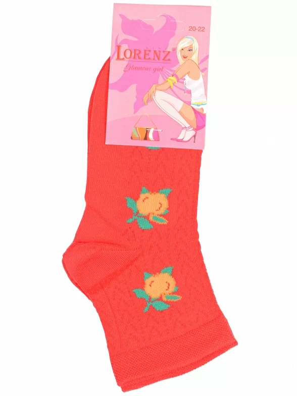 Летние укороченные детские носки, цвет красный, с принтом, состав: 90% хлопок, 7% полиамид, 3% эластан (лайкра), арт. П3. Производитель «ИП Мурзаков В.А., Ставропольский край, Россия» под брендом «Lorenzline».