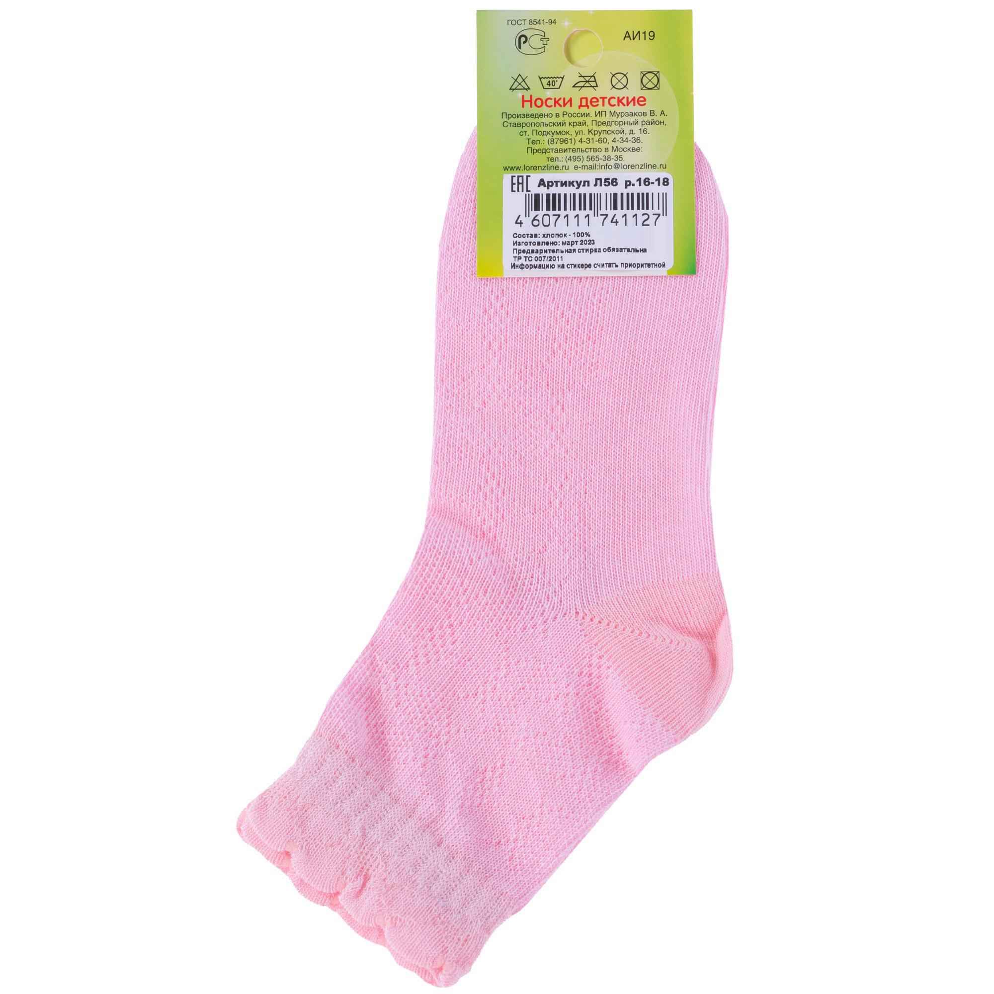 Летние средней длины детские носки, цвет розовый, в сеточку, классические, шов обычный (не бесшовные), принт (рисунок): однотонный, состав: 100% хлопок, арт. Л56Д. Производитель «ИП Мурзаков В.А., Ставропольский край, Россия» под брендом «Lorenzline».