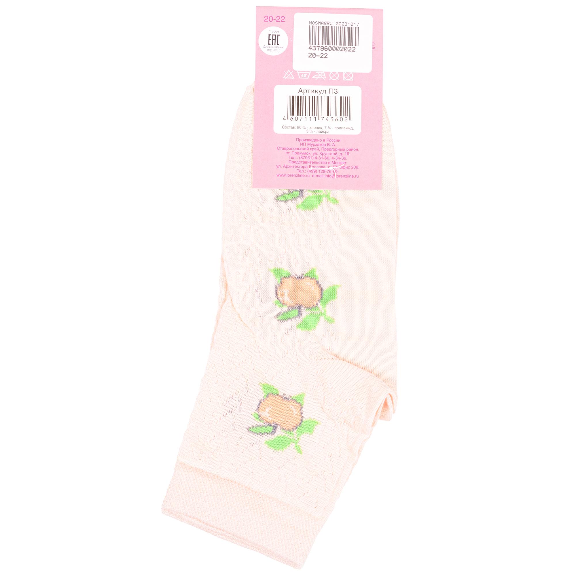 Летние укороченные детские носки, цвет розовый, с принтом, состав: 90% хлопок, 7% полиамид, 3% эластан (лайкра), арт. П3. Производитель «ИП Мурзаков В.А., Ставропольский край, Россия» под брендом «Lorenzline».