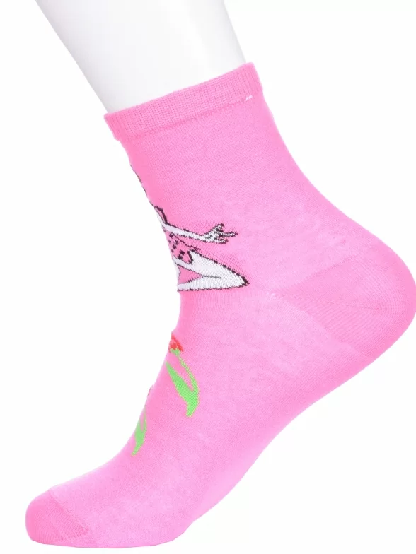 Круглогодичные укороченные детские носки, цвет розовый, с принтом, состав: 90% хлопок, 7% полиамид, 3% эластан (лайкра). Производитель «ИП Мурзаков В.А., Ставропольский край, Россия» под брендом «Lorenzline».