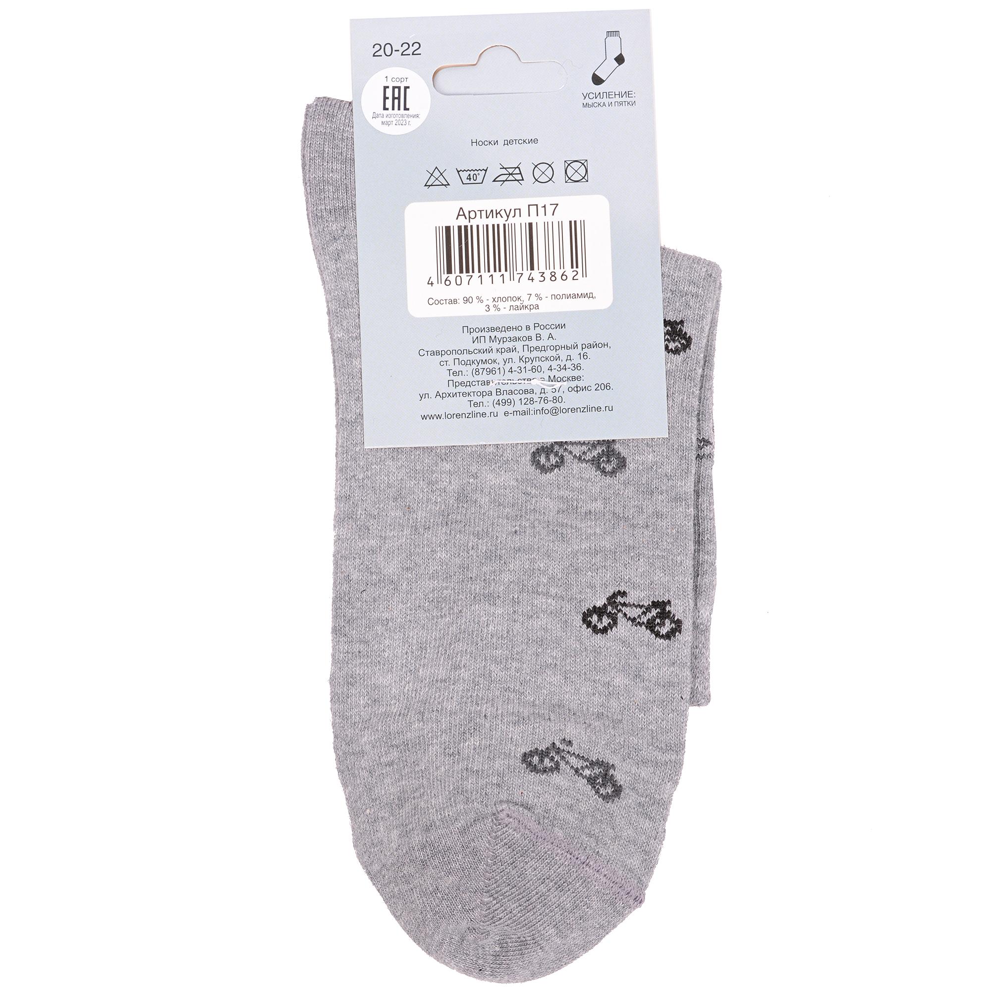 Круглогодичные укороченные детские носки, цвет серый, повседневные, возможно бесшовные, принт (рисунок): транспорт, с узором, состав: 90% хлопок, 7% полиамид, 3% эластан (лайкра), арт. П17. Производитель «ИП Мурзаков В.А., Ставропольский край, Россия» под брендом «Lorenzline».