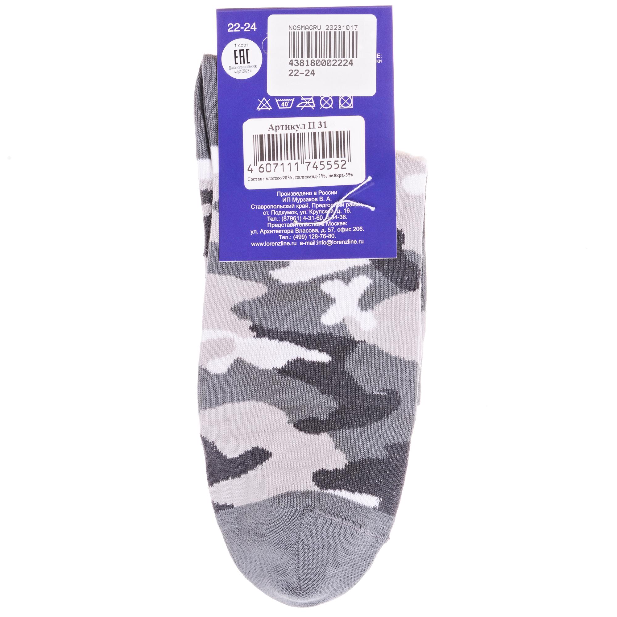 Круглогодичные укороченные детские носки, цвет серый, с принтом, состав: 90% хлопок, 7% полиамид, 3% эластан (лайкра), арт. П31. Производитель «ИП Мурзаков В.А., Ставропольский край, Россия» под брендом «Lorenzline».