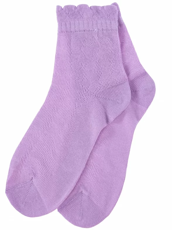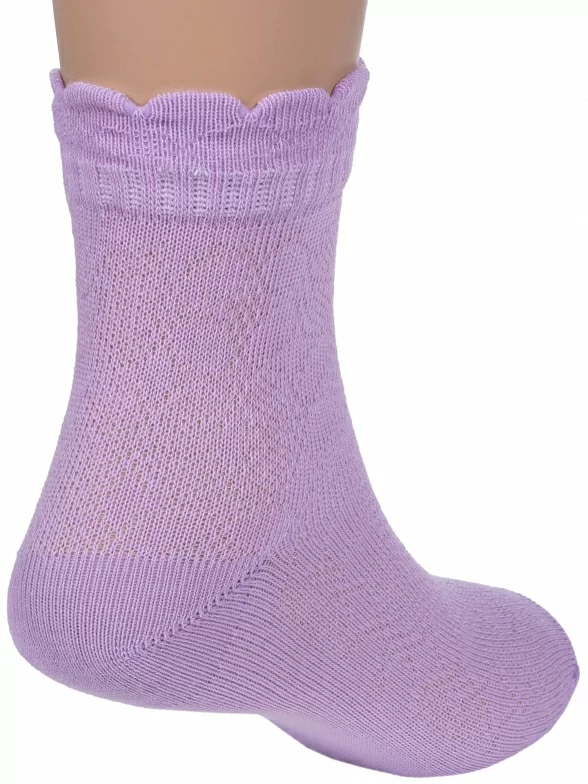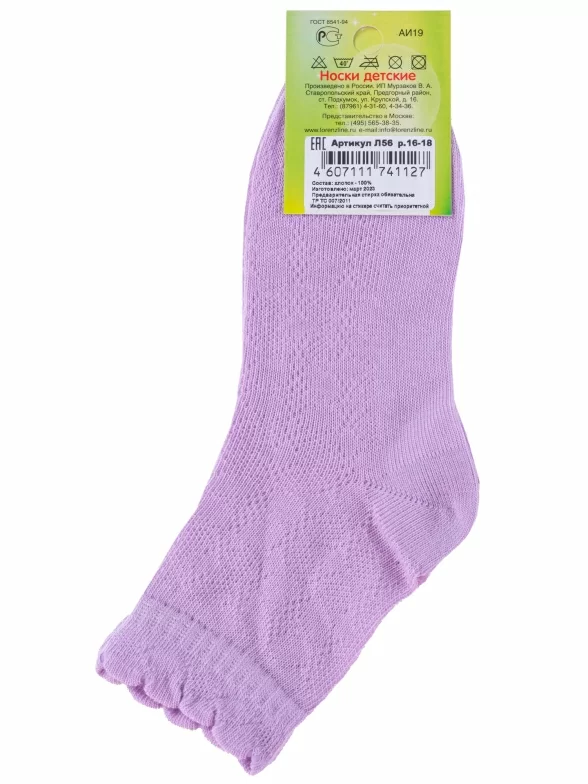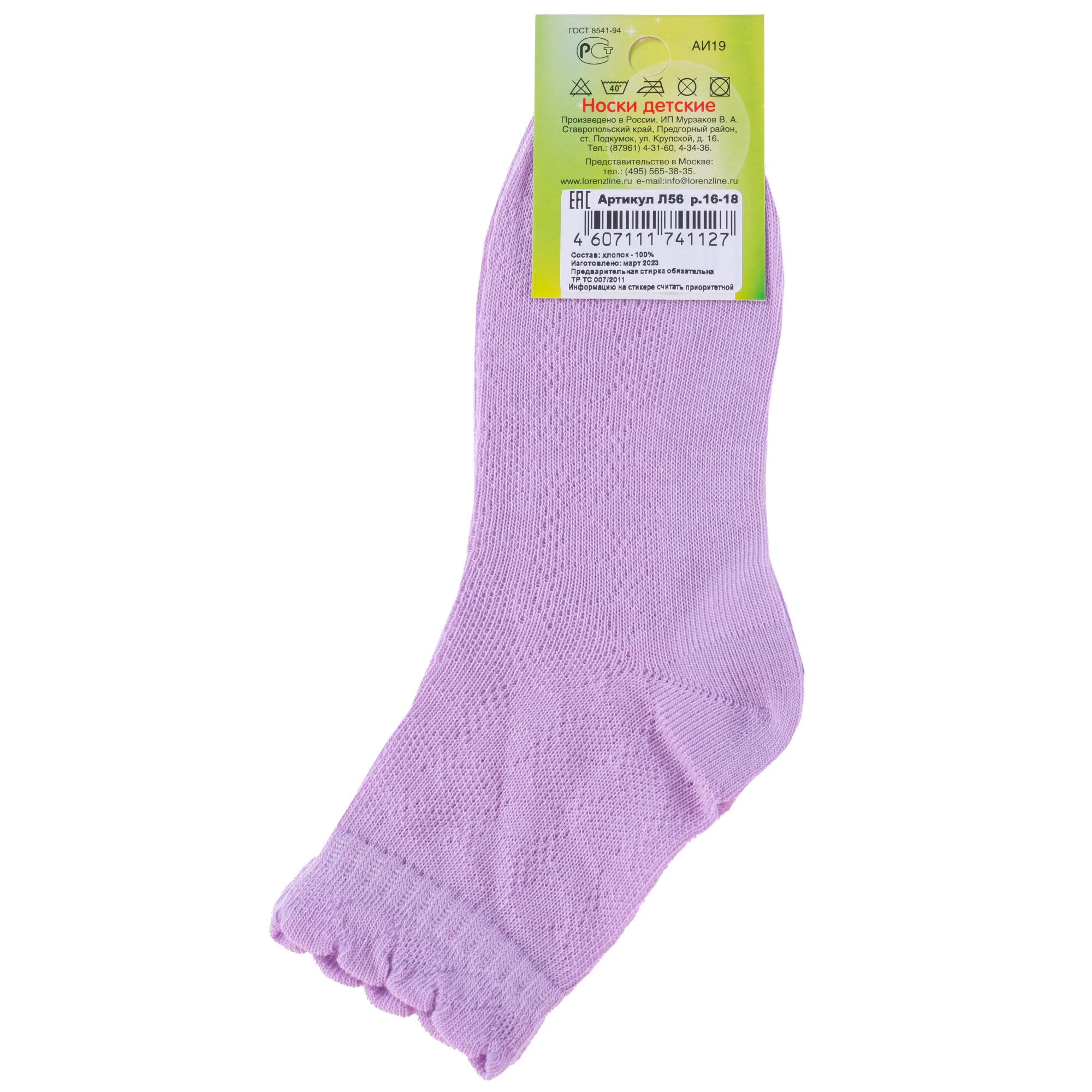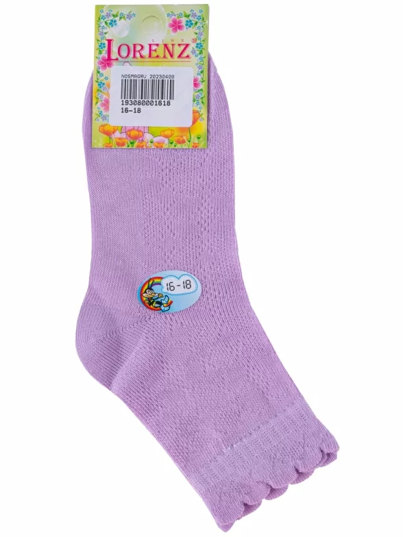 Летние средней длины детские носки, цвет сиреневый, в сеточку, классические, шов обычный (не бесшовные), принт (рисунок): однотонный, состав: 100% хлопок, арт. Л56Д. Производитель «ИП Мурзаков В.А., Ставропольский край, Россия» под брендом «Lorenzline».