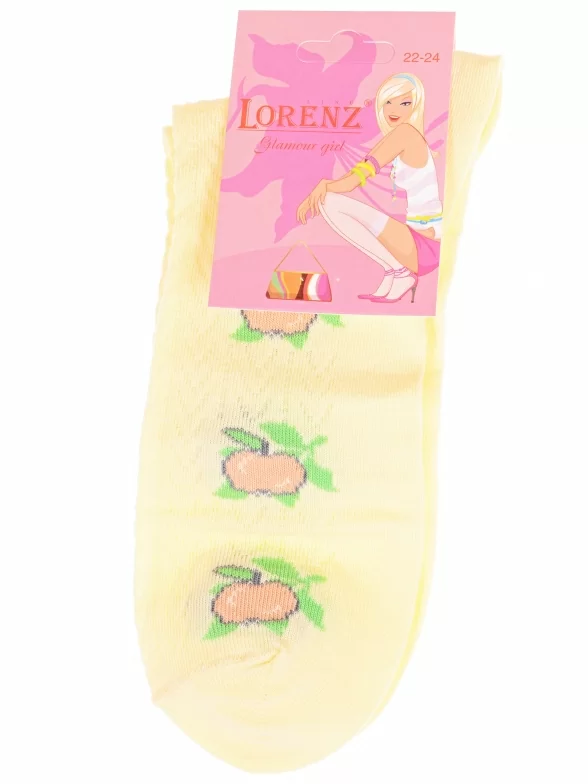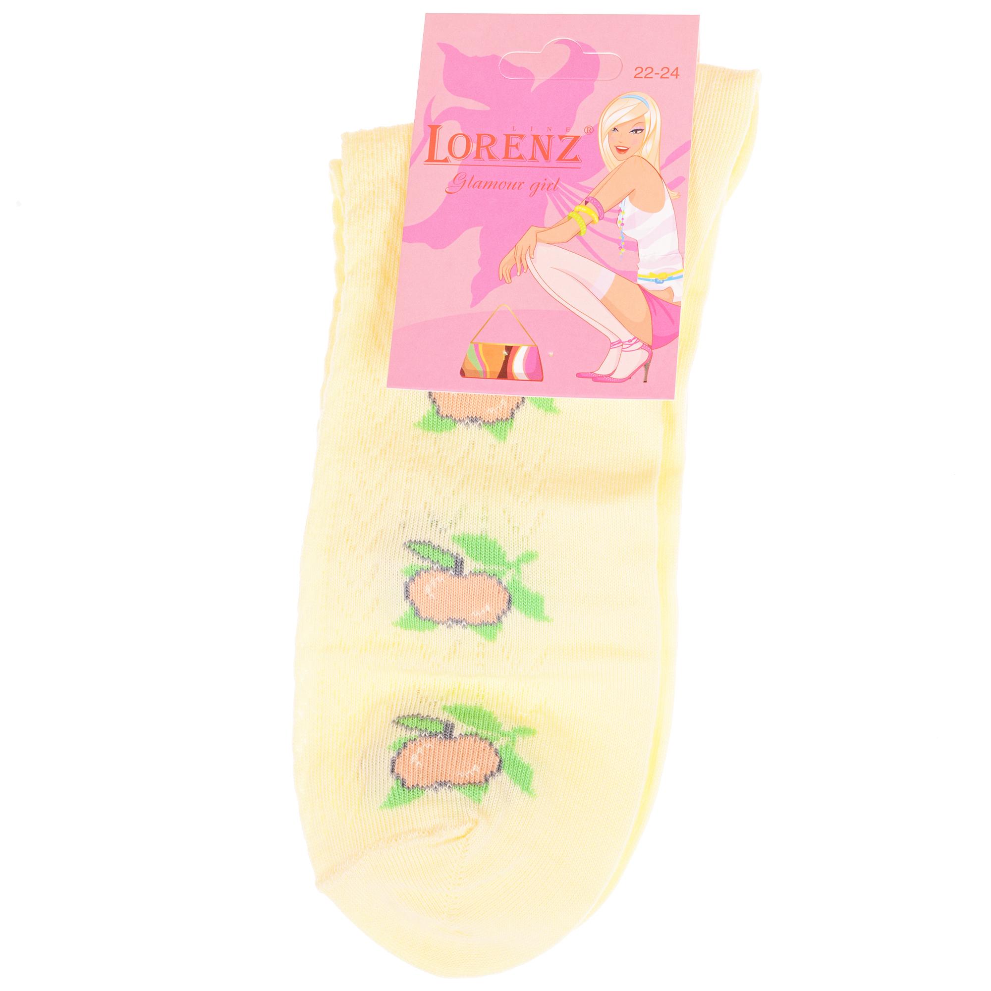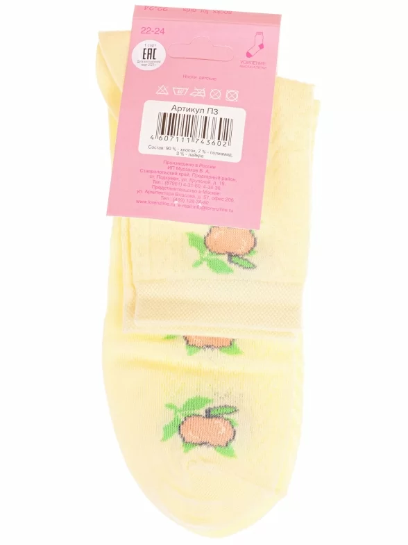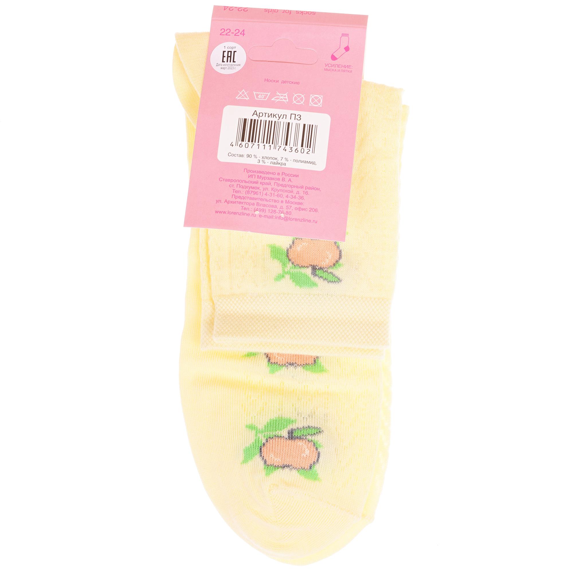 Летние укороченные детские носки, цвет желтый, с принтом, состав: 90% хлопок, 7% полиамид, 3% эластан (лайкра), арт. П3. Производитель «ИП Мурзаков В.А., Ставропольский край, Россия» под брендом «Lorenzline».