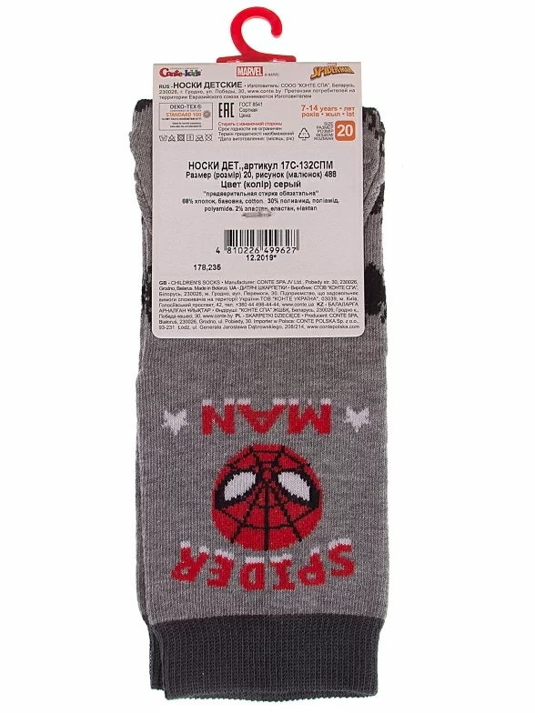 Детские носки MARVEL Conte kids, 17С-132/2СПМ, рис. 488, СЕРЫЕ