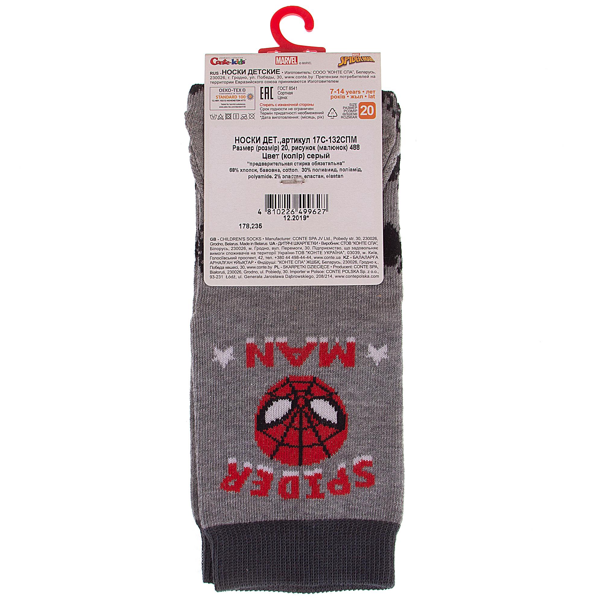 Детские носки MARVEL Conte kids 17С-132/2СПМ, рис. 488, СЕРЫЕ