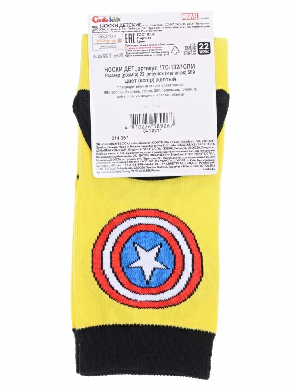 Детские носки MARVEL Conte kids, 17С-132/1СПМ, рис. 589, ЖЕЛТЫЕ