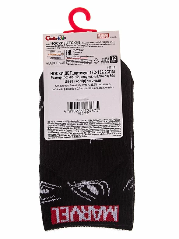 Круглогодичные укороченные детские носки, цвет черный, прикольные, состав: 72% хлопок, 25.5% полиамид, 2.5% эластан, фабричный артикул 17С-132/2СПМ. Производитель «Conte, Беларусь» под брендом «Conte».