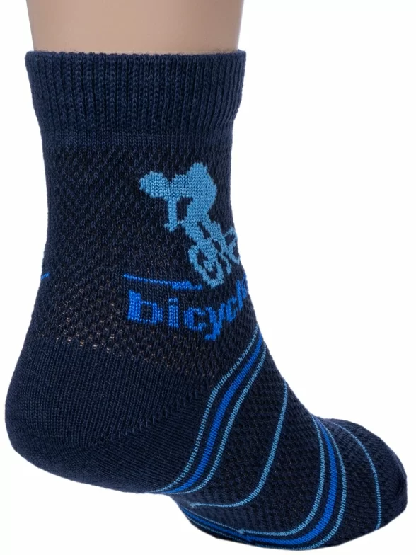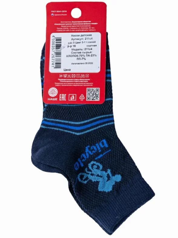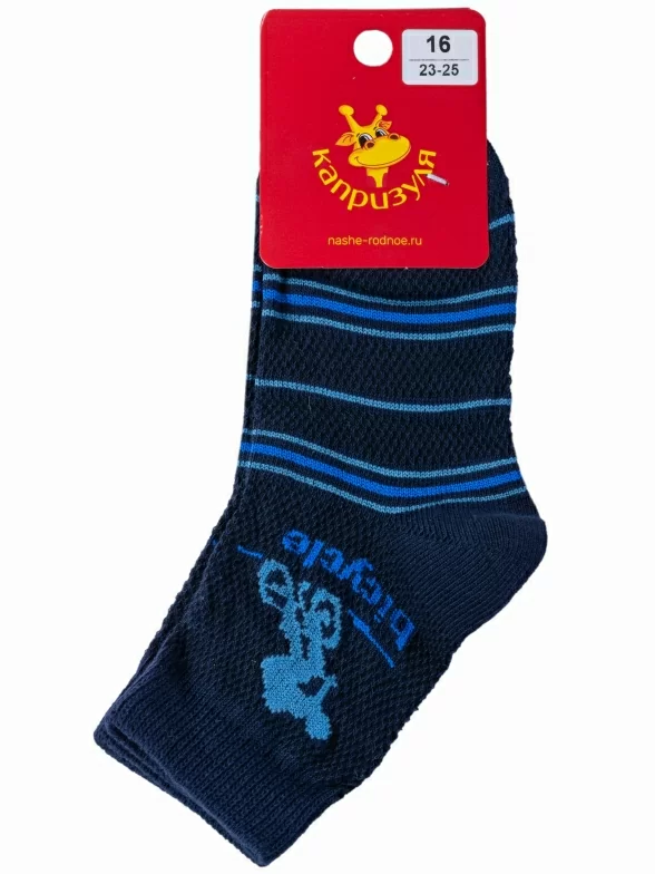 Летние укороченные детские носки, цвет темно-синий, в сеточку, спортивные, повседневные, шов обычный (не бесшовные), принт (рисунок): транспорт, спортивные, путешествия, с узором, состав: 70% хлопок, 23% полиамид, 7% полипропилен, арт. 211С4. Производитель «Смоленская чулочная фабрика, Россия» под брендом «Наше смоленской чулочной фабрики».