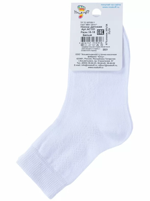 Детские носки "Носкофф" (АЛСУ), АС151, БЕЛЫЕ