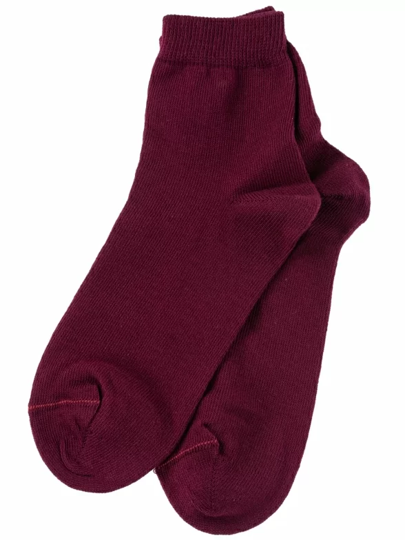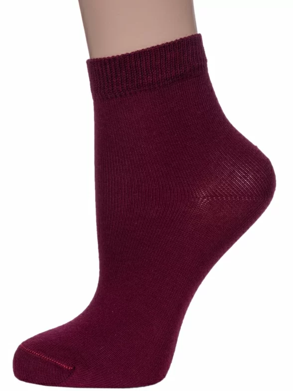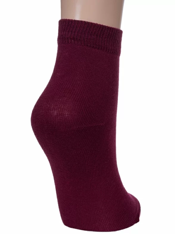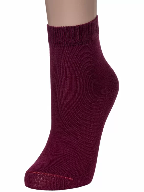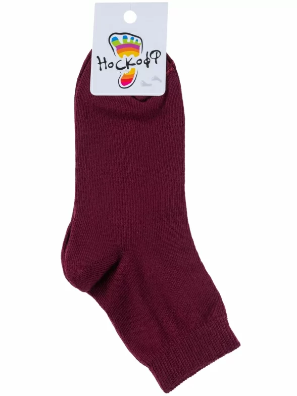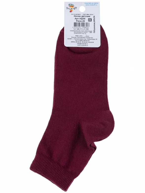 Круглогодичные укороченные детские носки, цвет бордовый, классические, шов обычный (не бесшовные), принт (рисунок): однотонный, без рисунков/узоров, состав: 76% хлопок, 24% полиамид, арт. НД30. Производитель «Носкофф» Россия под брендом «Носкофф (алсу)».