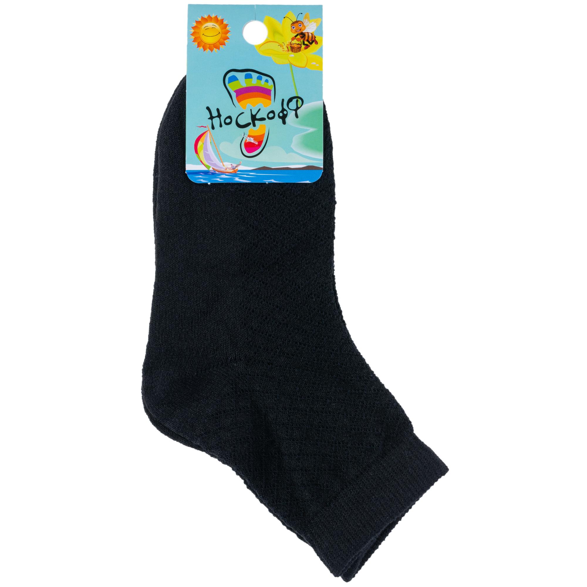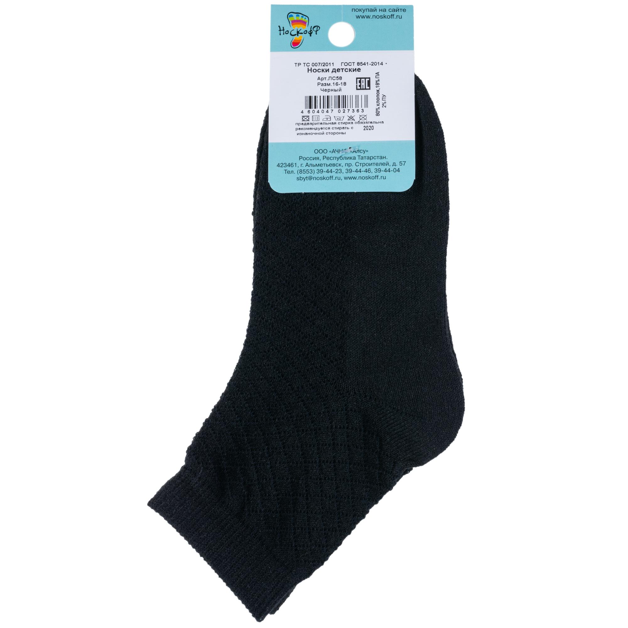 Летние укороченные детские носки, цвет черный, в сеточку, классические, шов обычный (не бесшовные), принт (рисунок): геометрия, с узором, однотонный, состав: 80% хлопок, 18% полиамид, 2% полиуретан (эластан), арт. ЛС58. Производитель «Носкофф» Россия под брендом «Носкофф (алсу)».