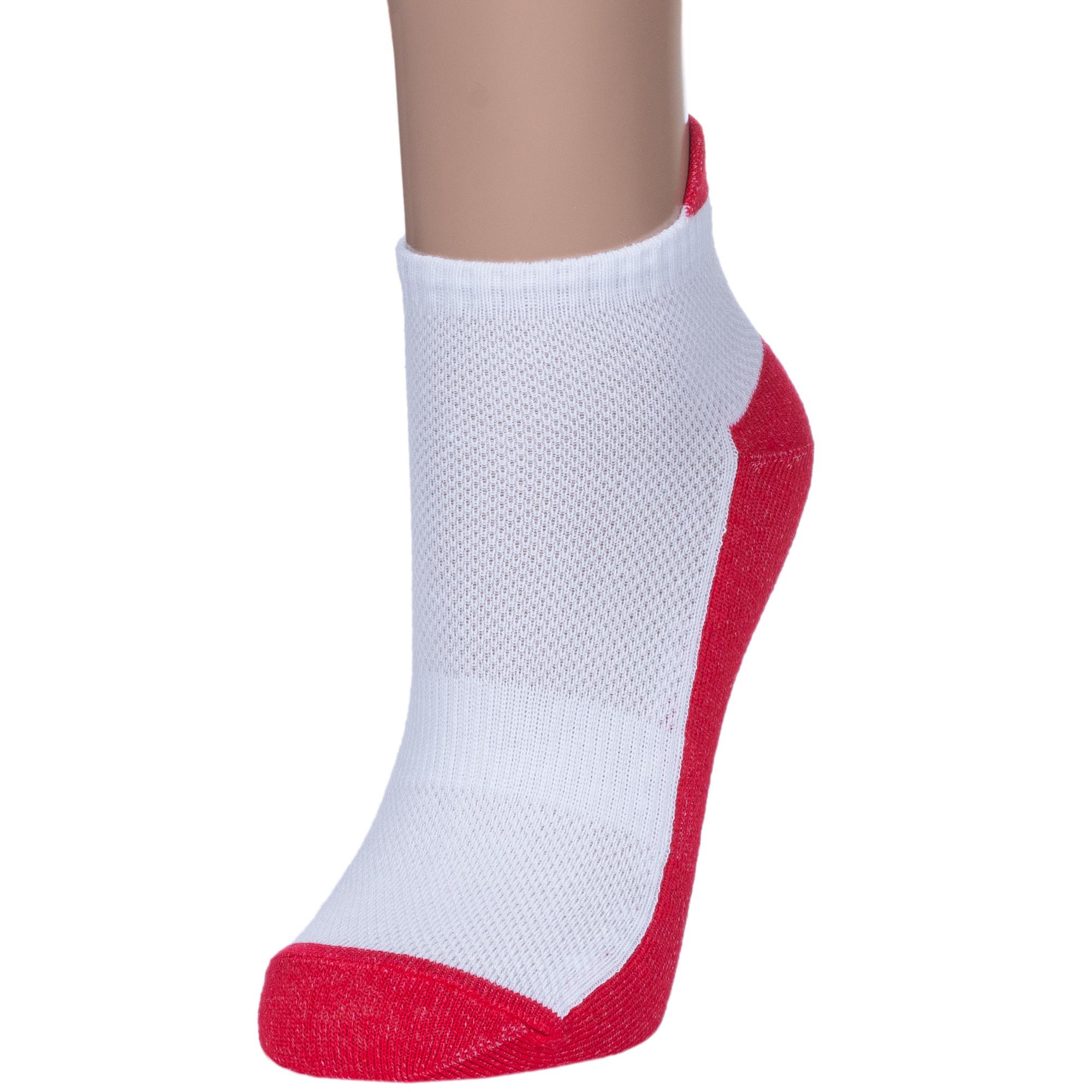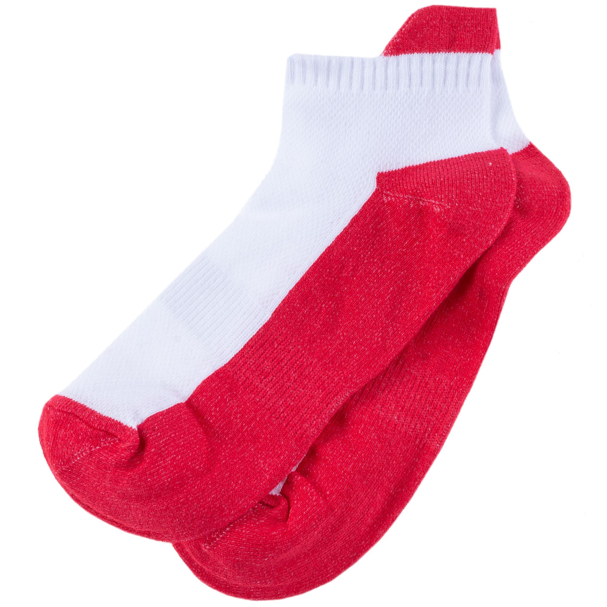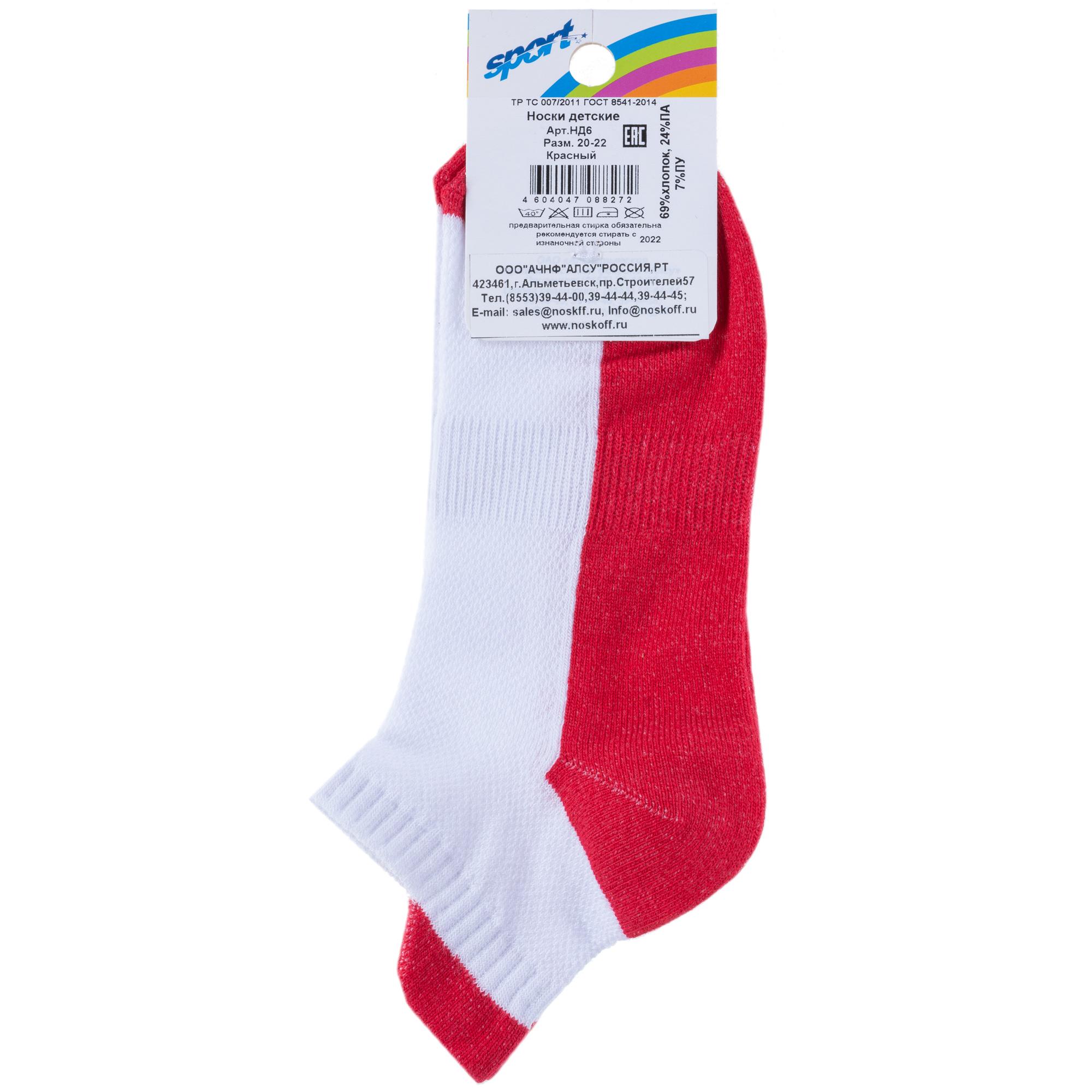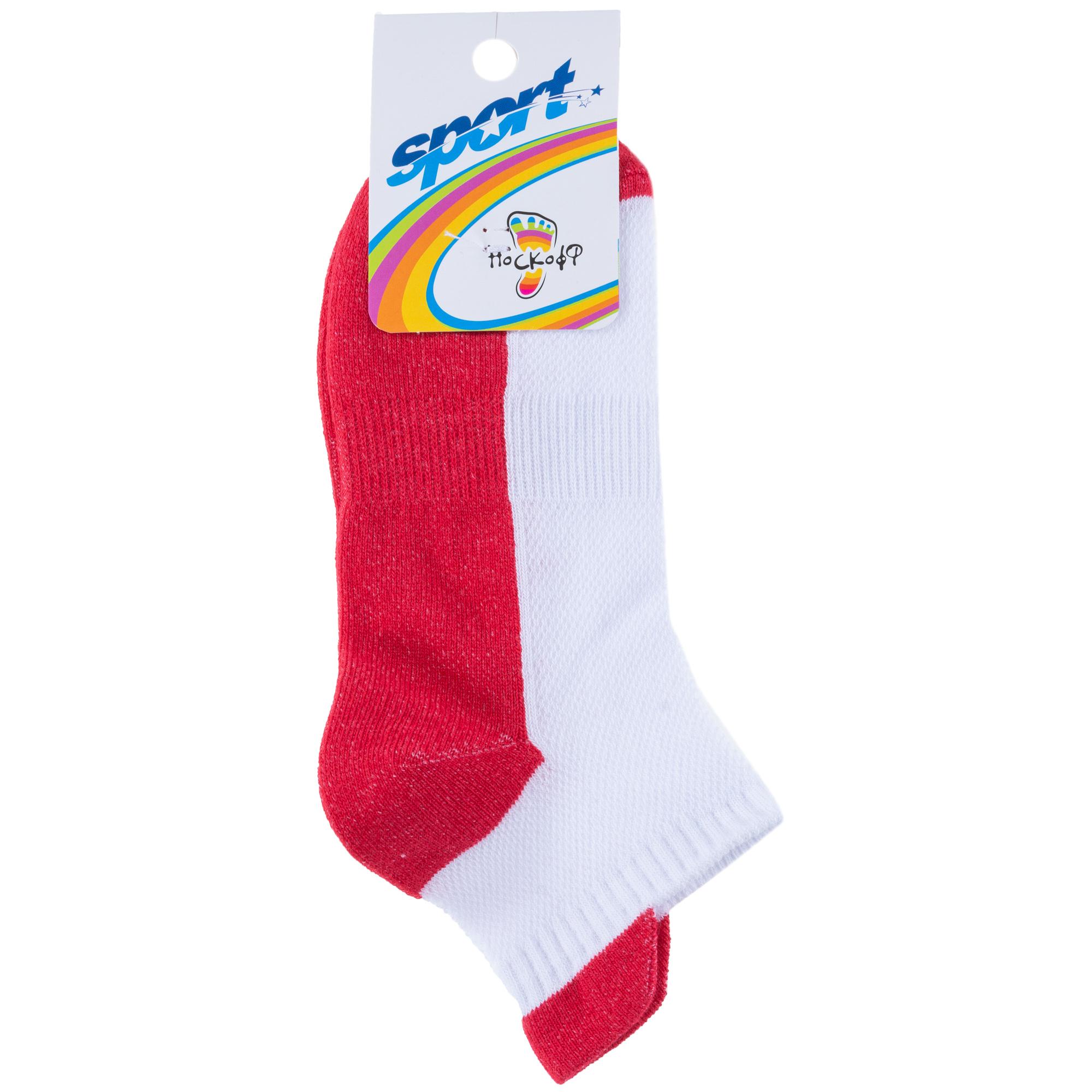Летние короткие детские носки, цвет многоцветные (мультиколор)-красный, в сеточку, спортивные, шов обычный (не бесшовные), принт (рисунок): спортивные, контрастные пятка / мысок / резинка, с узором, состав: 69% хлопок, 24% полиамид, 7% полиуретан (эластан), арт. НД6. Производитель «Носкофф» Россия под брендом «Носкофф (алсу)».