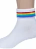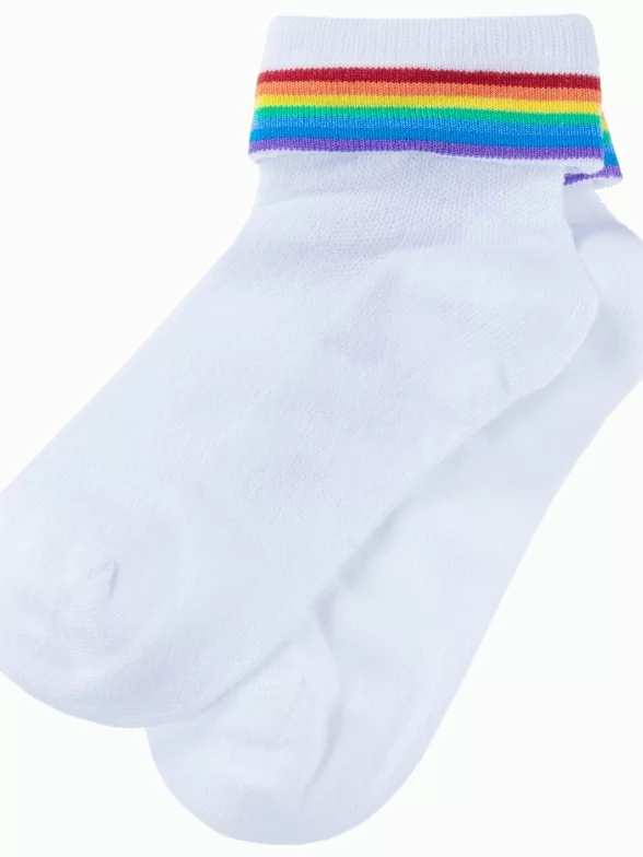 Летние короткие детские носки, цвет белый, в сеточку, спортивные, с отворотом, шов обычный (не бесшовные), принт (рисунок): контрастные пятка / мысок / резинка, с узором, состав: 67% хлопок, 30% полиамид, 3% полиуретан (эластан), арт. НД15. Производитель «Носкофф» Россия под брендом «Носкофф (алсу)».