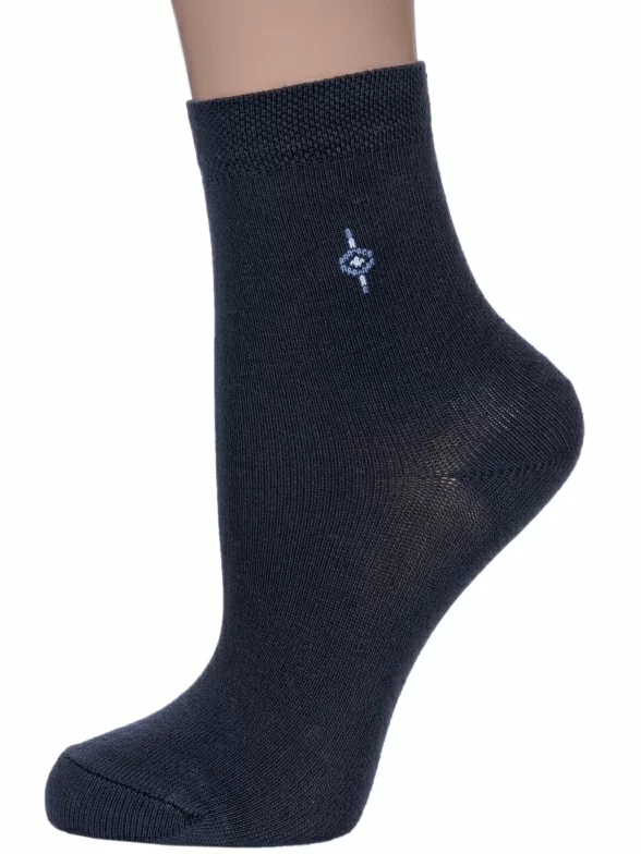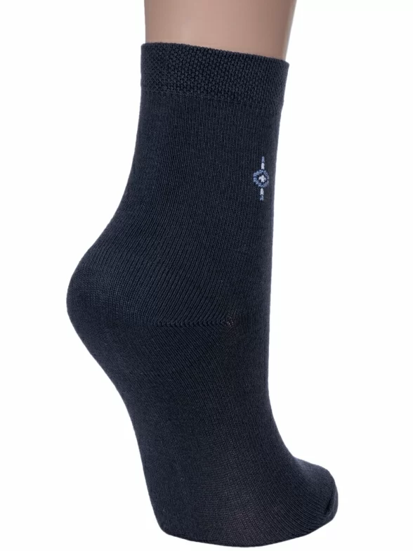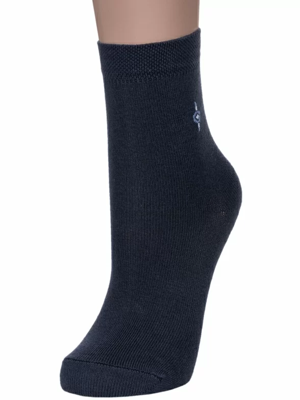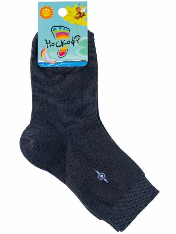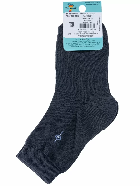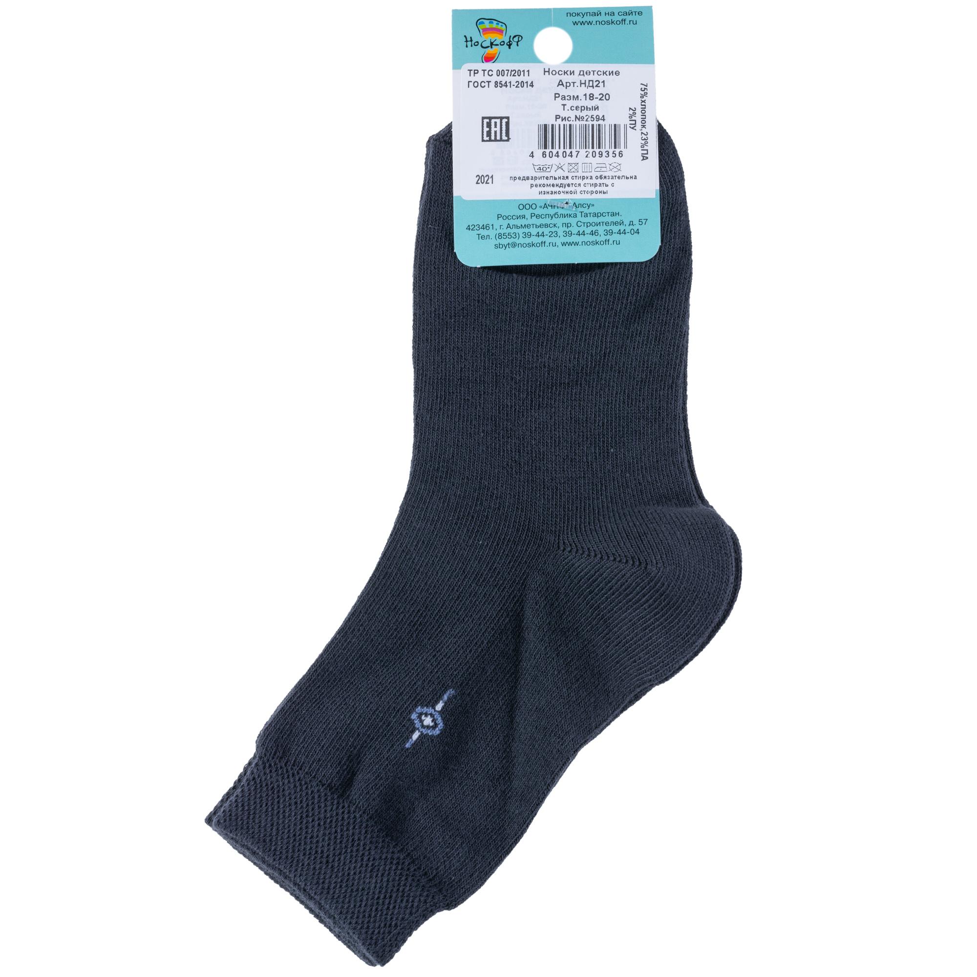 Круглогодичные укороченные детские носки, цвет темно-серый, классические, шов обычный (не бесшовные), принт (рисунок): однотонный, небольшой рисунок, состав: 75% хлопок, 23% полиамид, 2% полиуретан (эластан), арт. НД21. Производитель «Носкофф» Россия под брендом «Носкофф (алсу)».