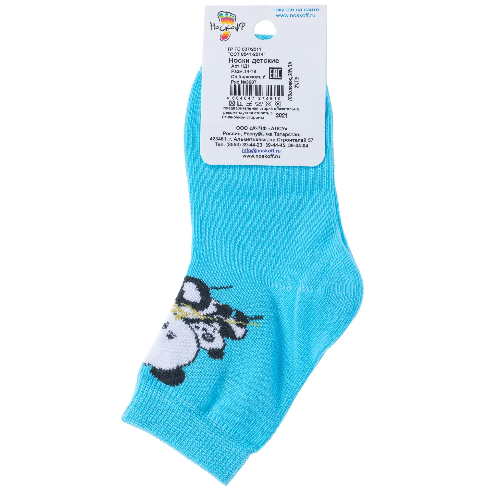 Круглогодичные укороченные детские носки, цвет бирюзовый, повседневные, шов обычный (не бесшовные), принт (рисунок): животные, с узором, состав: 70% хлопок, 28% полиамид, 2% полиуретан (эластан), арт. НД1. Производитель «Носкофф» Россия под брендом «Носкофф (алсу)».