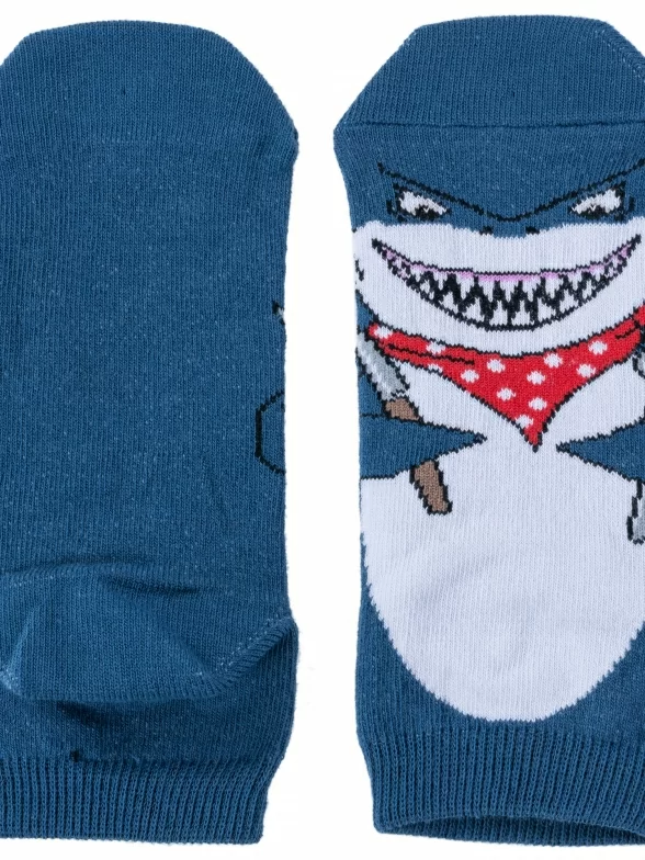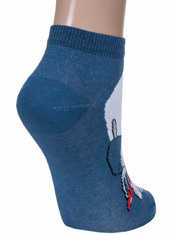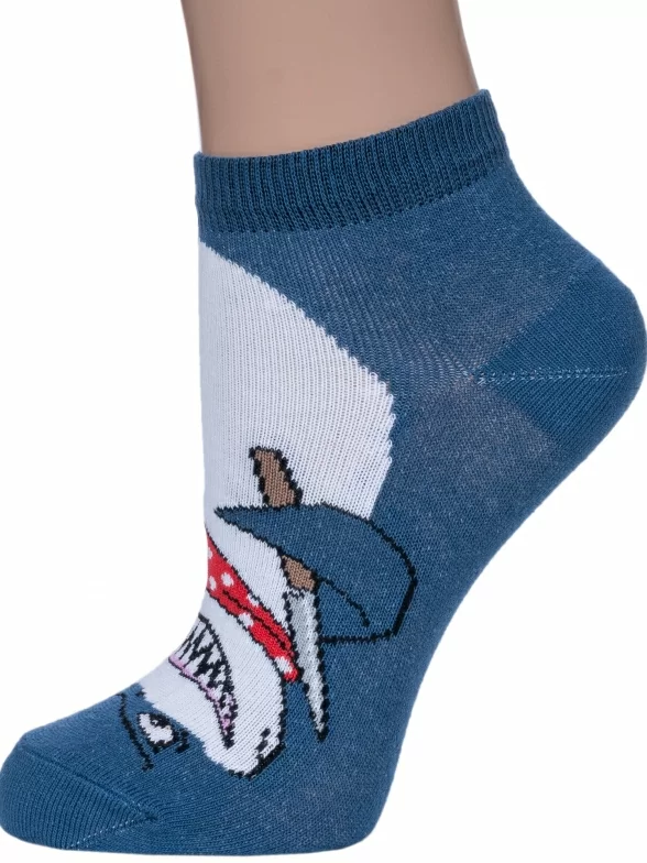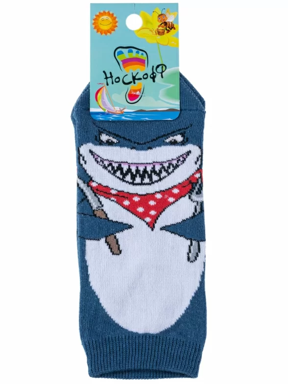 Круглогодичные укороченные детские носки, цвет синий-многоцветные (мультиколор), повседневные, шов обычный (не бесшовные), принт (рисунок): животные, с узором, крупные контрастные рисунки, состав: 69% хлопок, 23% полиамид, 6% полипропилен, 2% полиуретан (эластан), арт. НД1у. Производитель «Носкофф» Россия под брендом «Носкофф (алсу)».