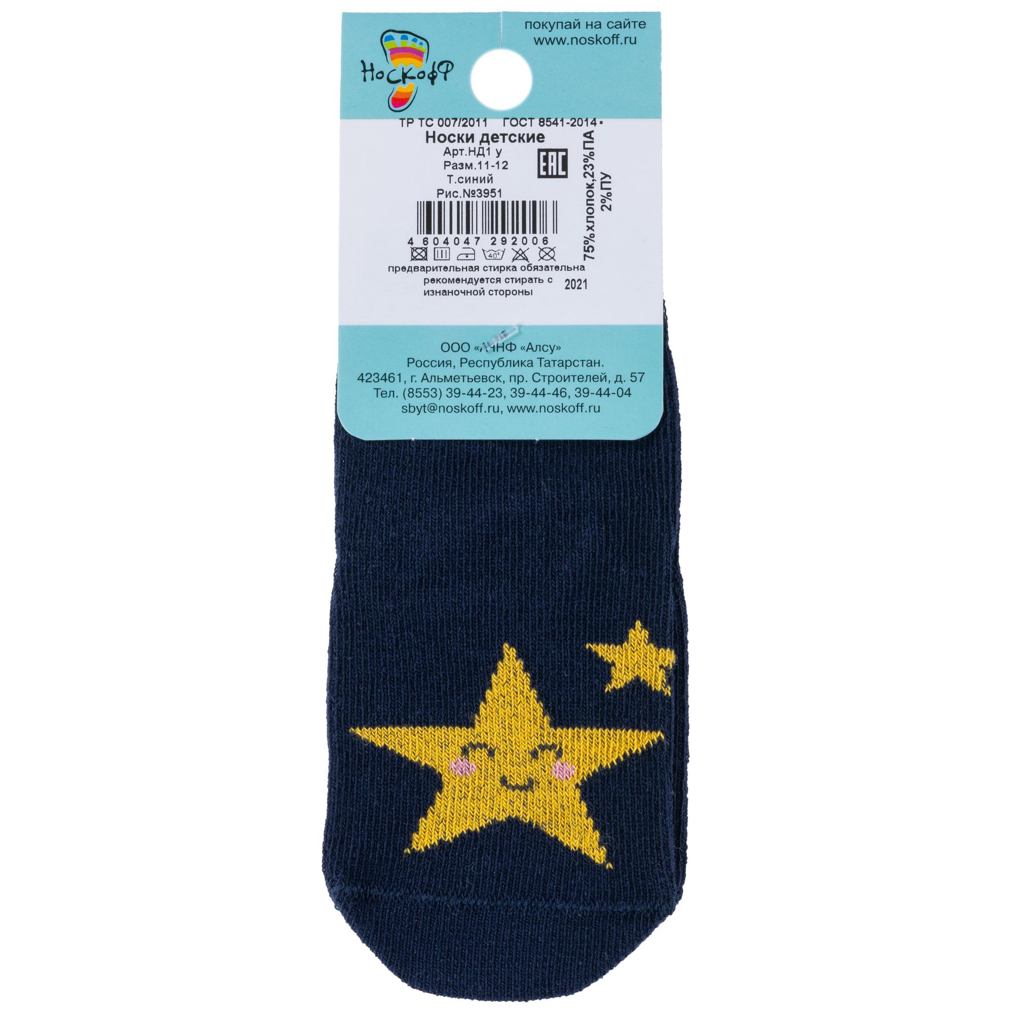 Круглогодичные укороченные детские носки, цвет темно-синий, разного цвета, повседневные, шов обычный (не бесшовные), принт (рисунок): звезды / небо, с узором, крупные контрастные рисунки, состав: 75% хлопок, 23% полиамид, 2% полиуретан (эластан), арт. НД1у. Производитель «Носкофф» Россия под брендом «Носкофф (алсу)».