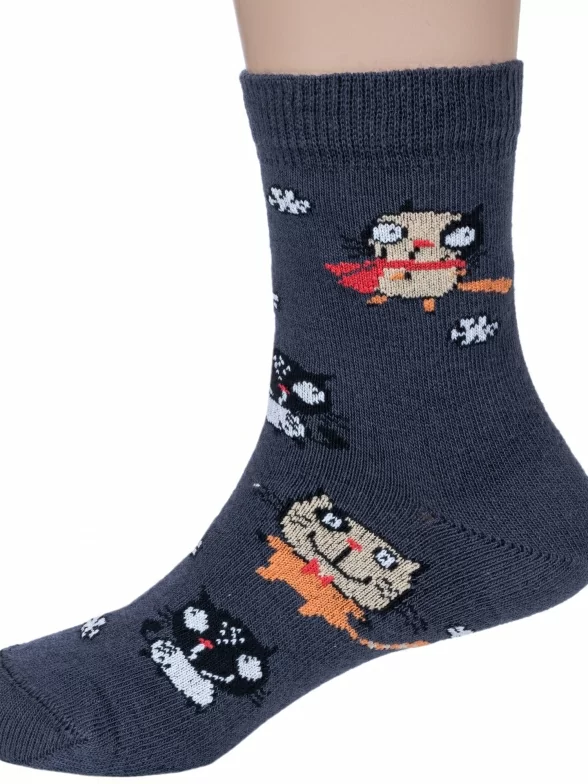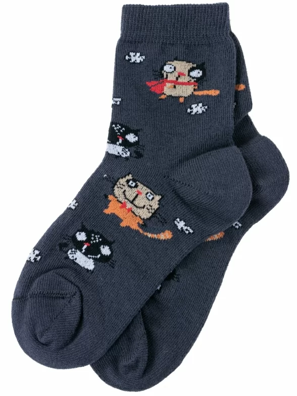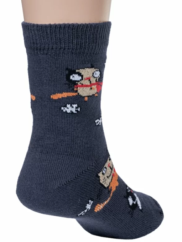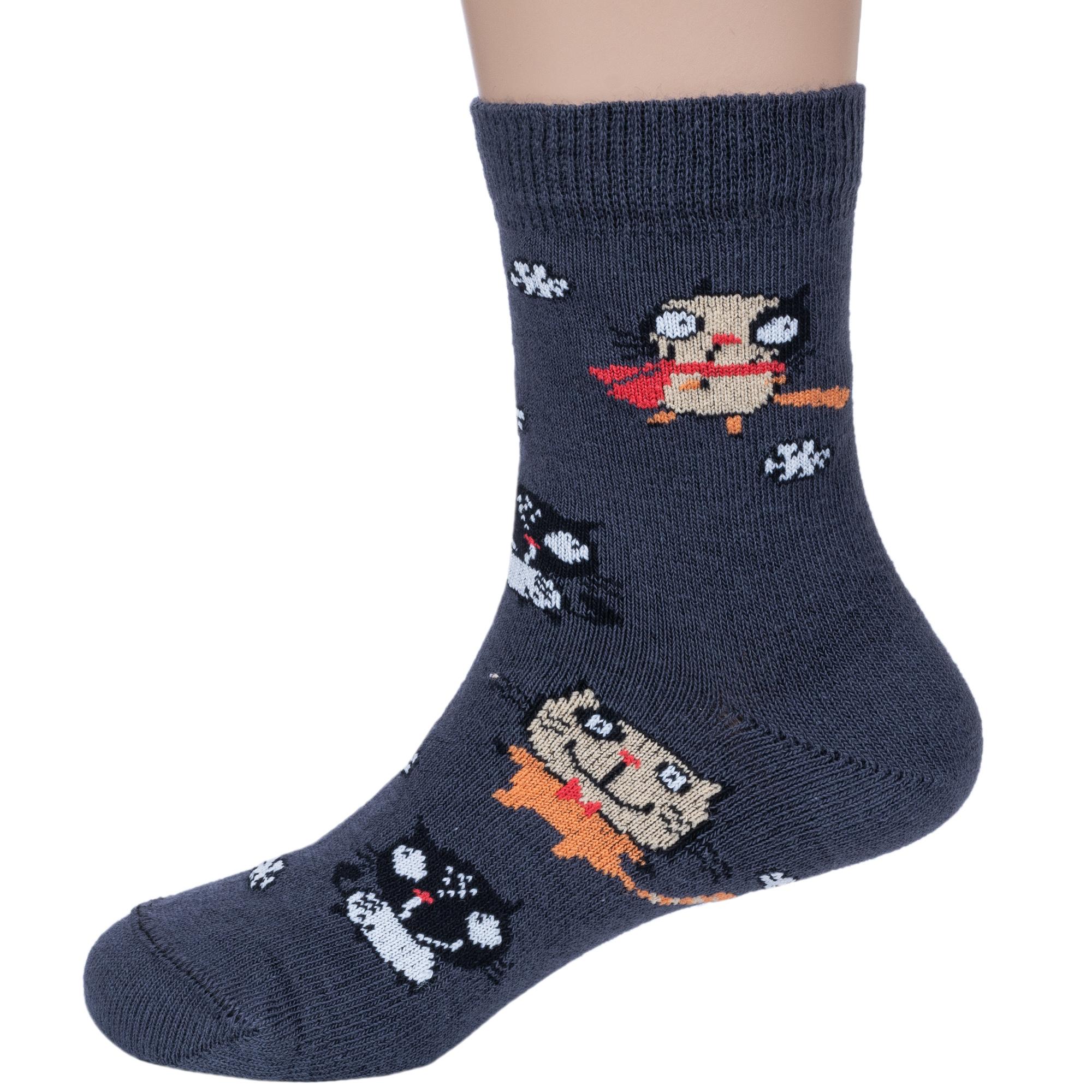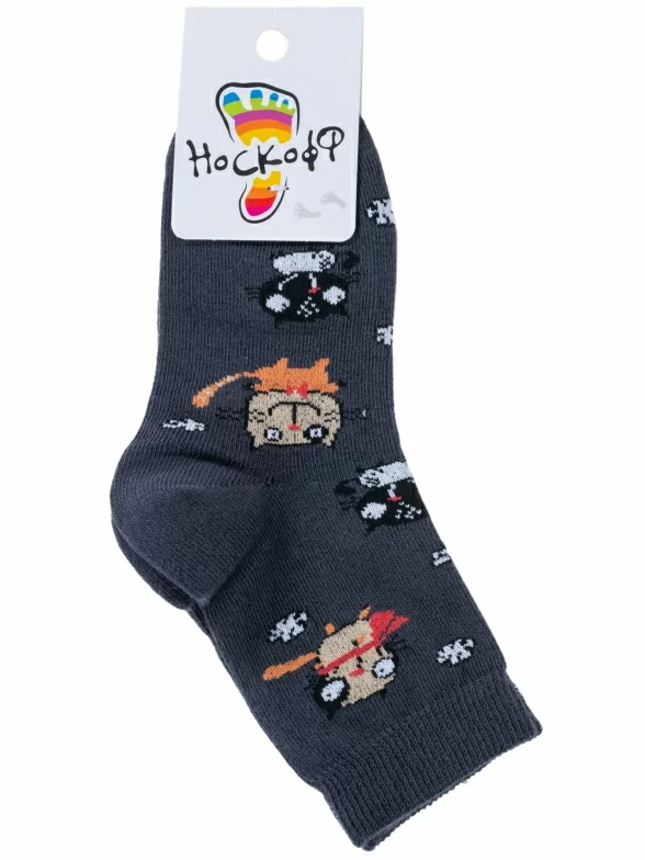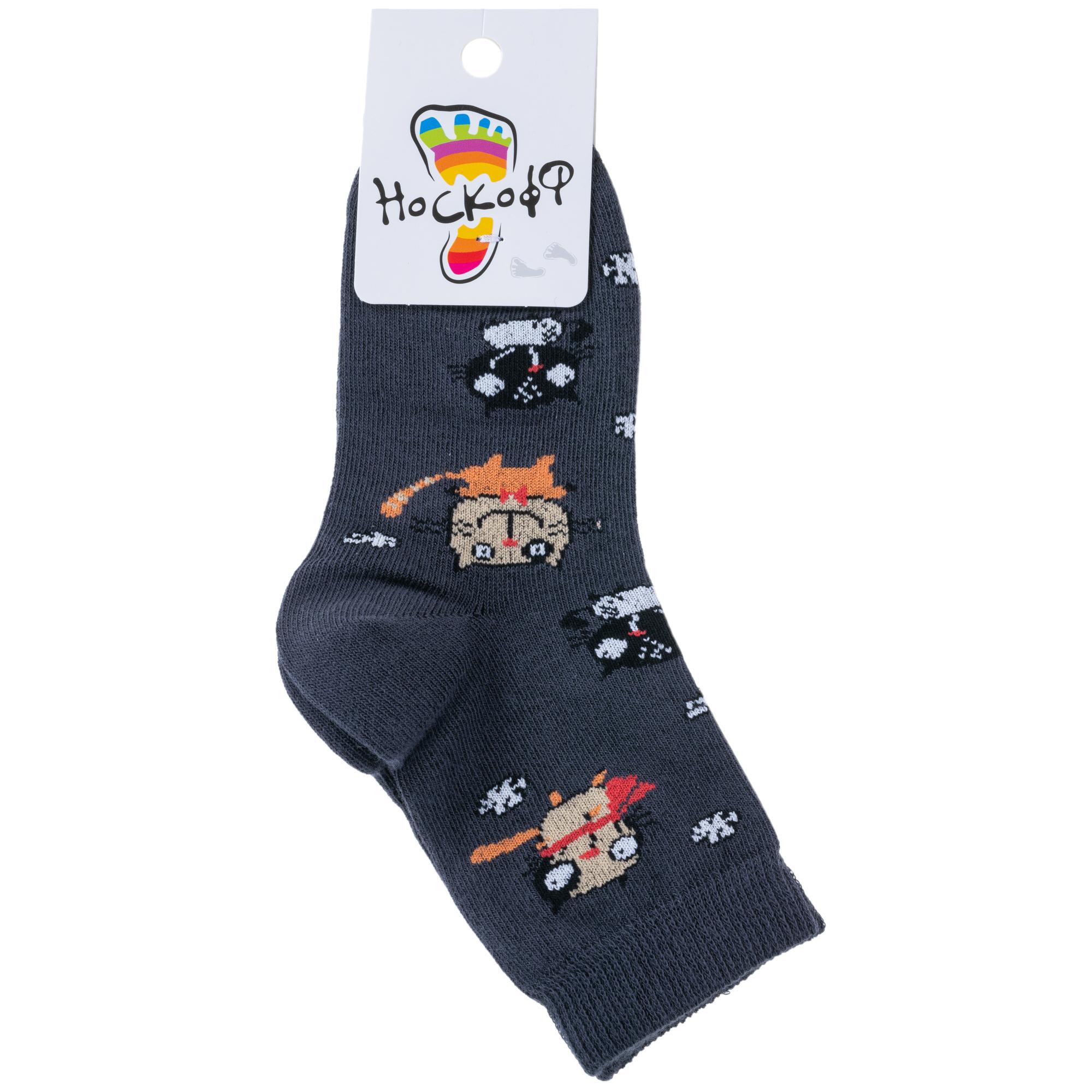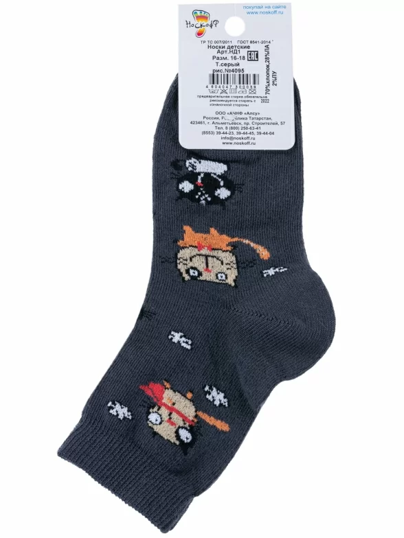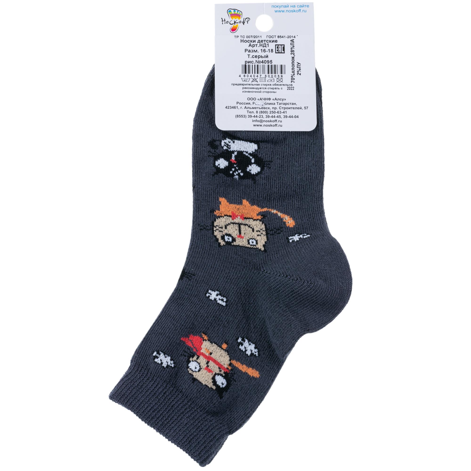 Круглогодичные укороченные детские носки, цвет темно-серый, повседневные, шов обычный (не бесшовные), принт (рисунок): животные, с узором, состав: 70% хлопок, 28% полиамид, 2% полиуретан (эластан), арт. НД1. Производитель «Носкофф» Россия под брендом «Носкофф (алсу)».